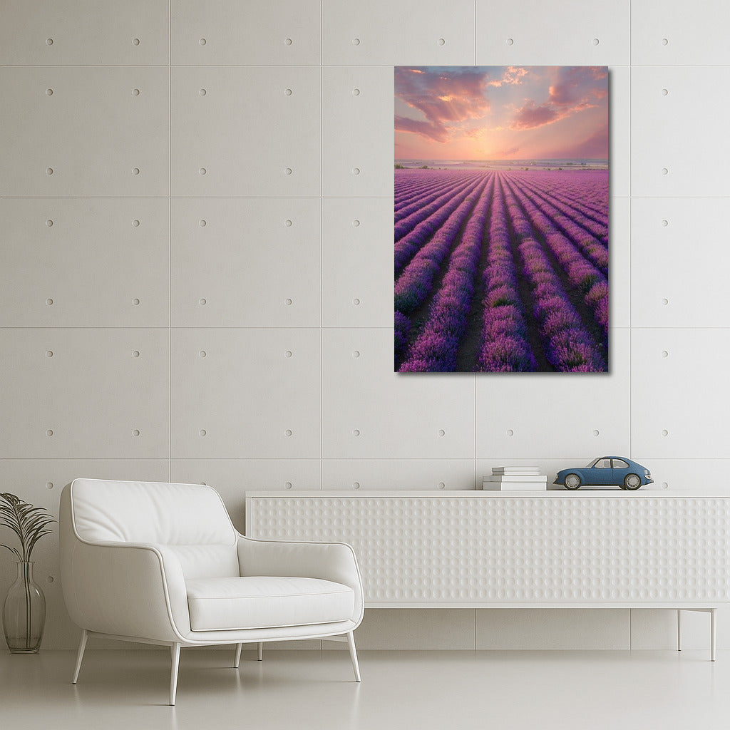 Lavender Sunset: Field of Flowers for Tranquility and Comfort Wall Art