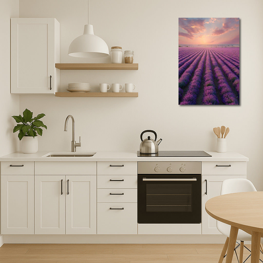 Lavender field at sunset. This poster will decorate your interior, bringing the tenderness and tranquility of nature to every corner of the house. See more from the collection: Flowers Art
