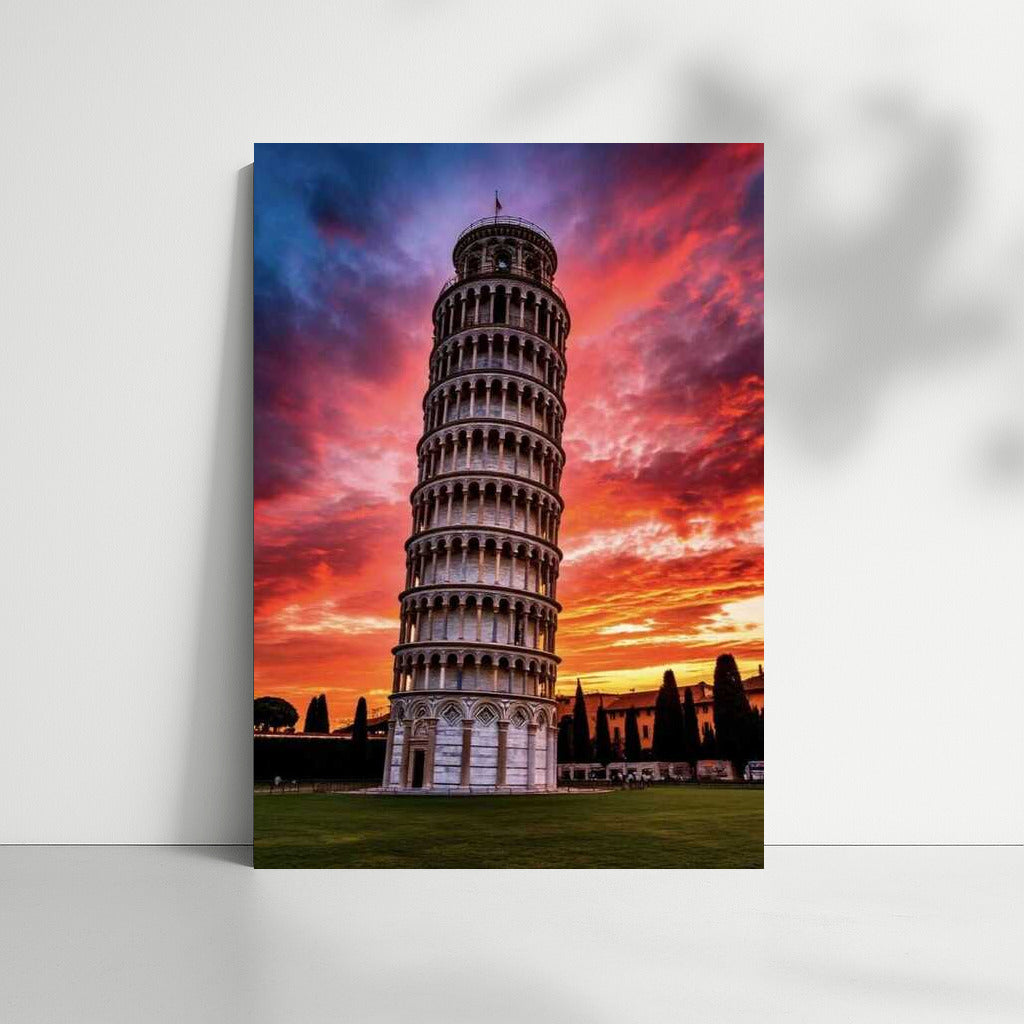 Leaning Tower of Pisa at Sunset: Italy's Fiery Sky Wall Art