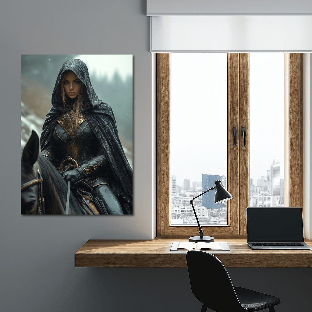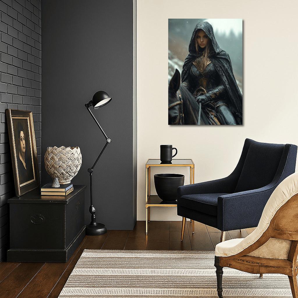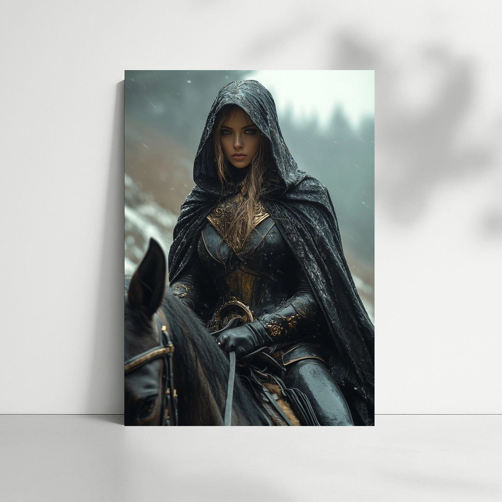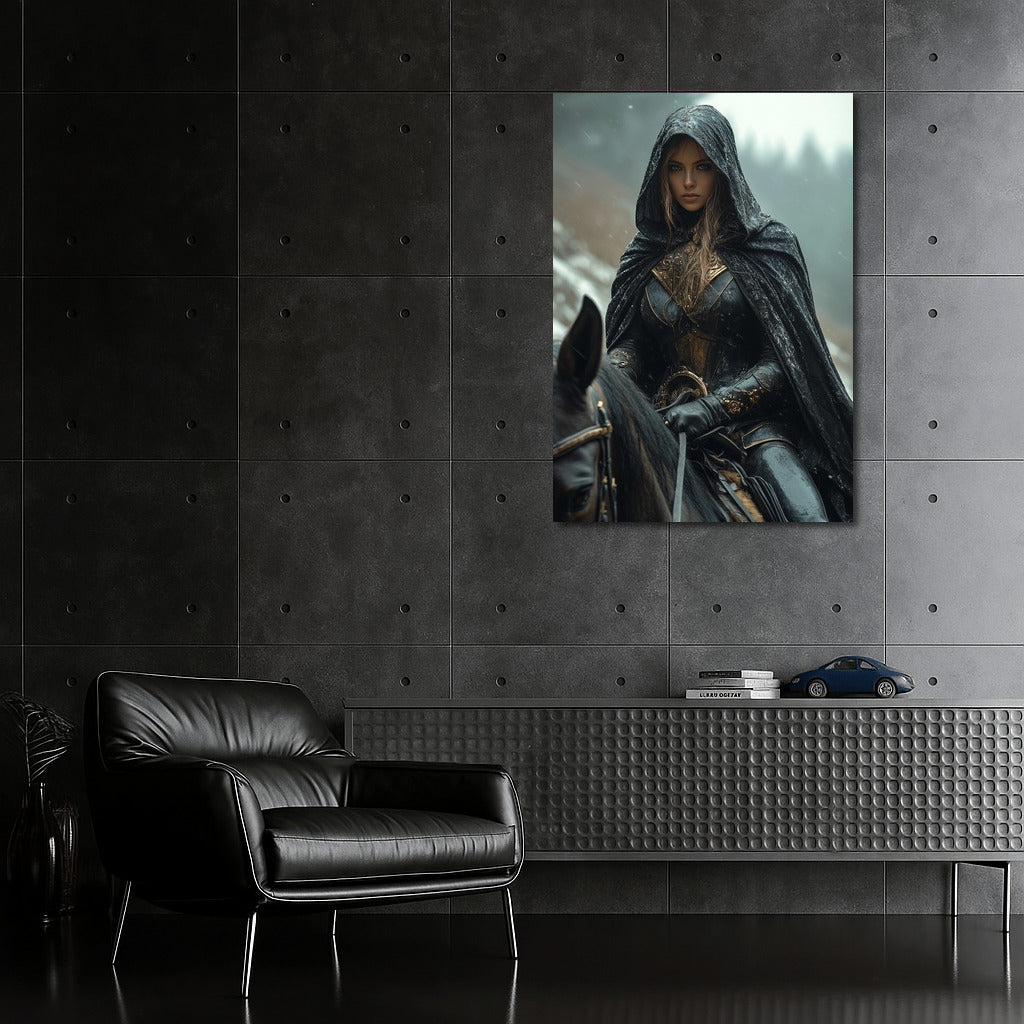 The mysterious armored horseman in the painting inspires adventure. Wall art that evokes legends. See more from the collection: Mythology & Legends Art