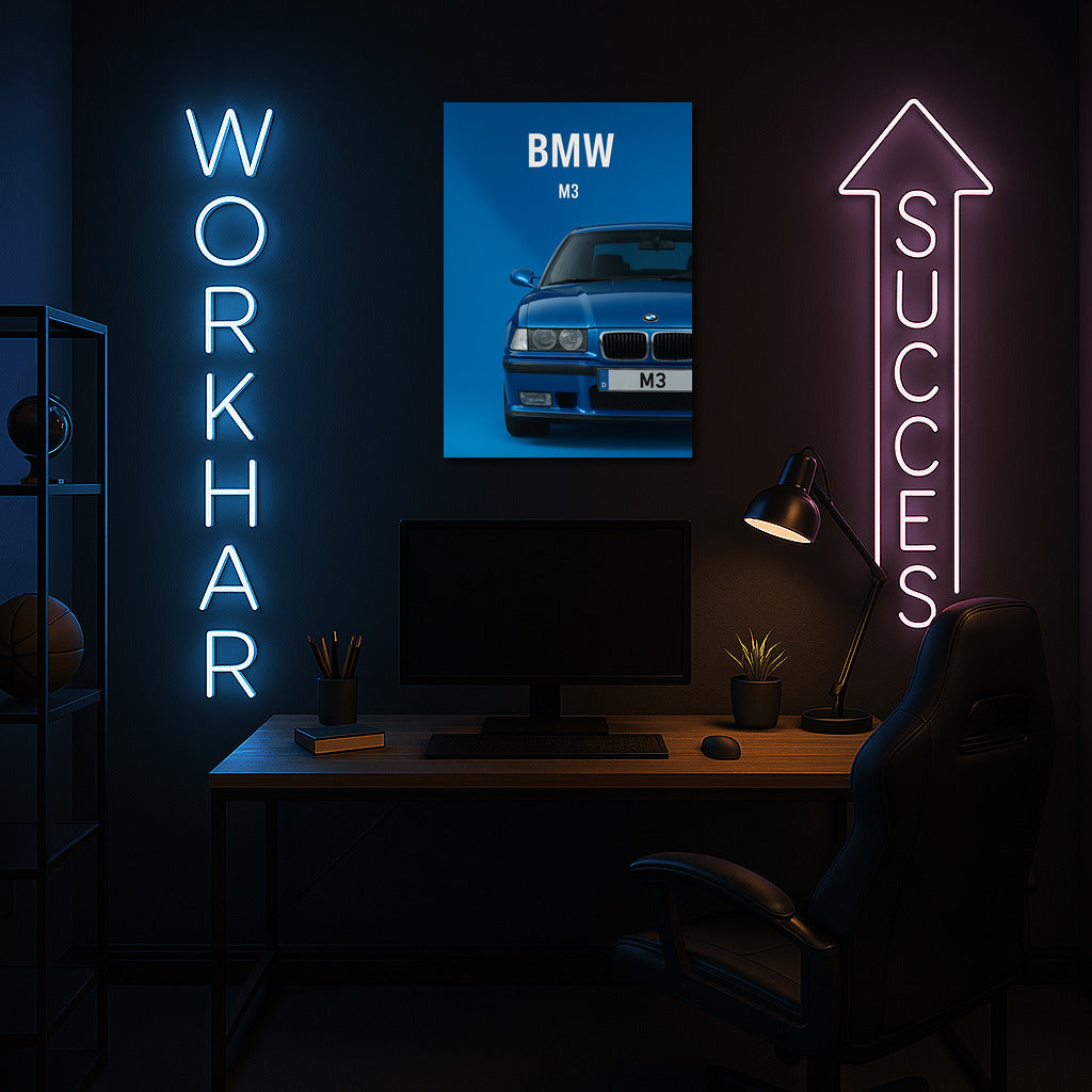 Stylish painting with the legendary BMW M3 E36 in blue. This wall art will inspire speed and elegance. See more from the collection: BMW Art