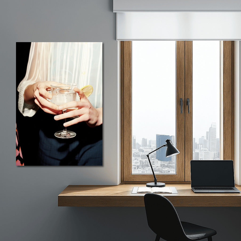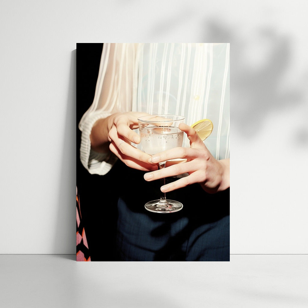 Elegant poster: Slender fingers hold a glass of lemon, adding sophistication to your wall art. Art that inspires. See more from the collection: Mixed Wall Art