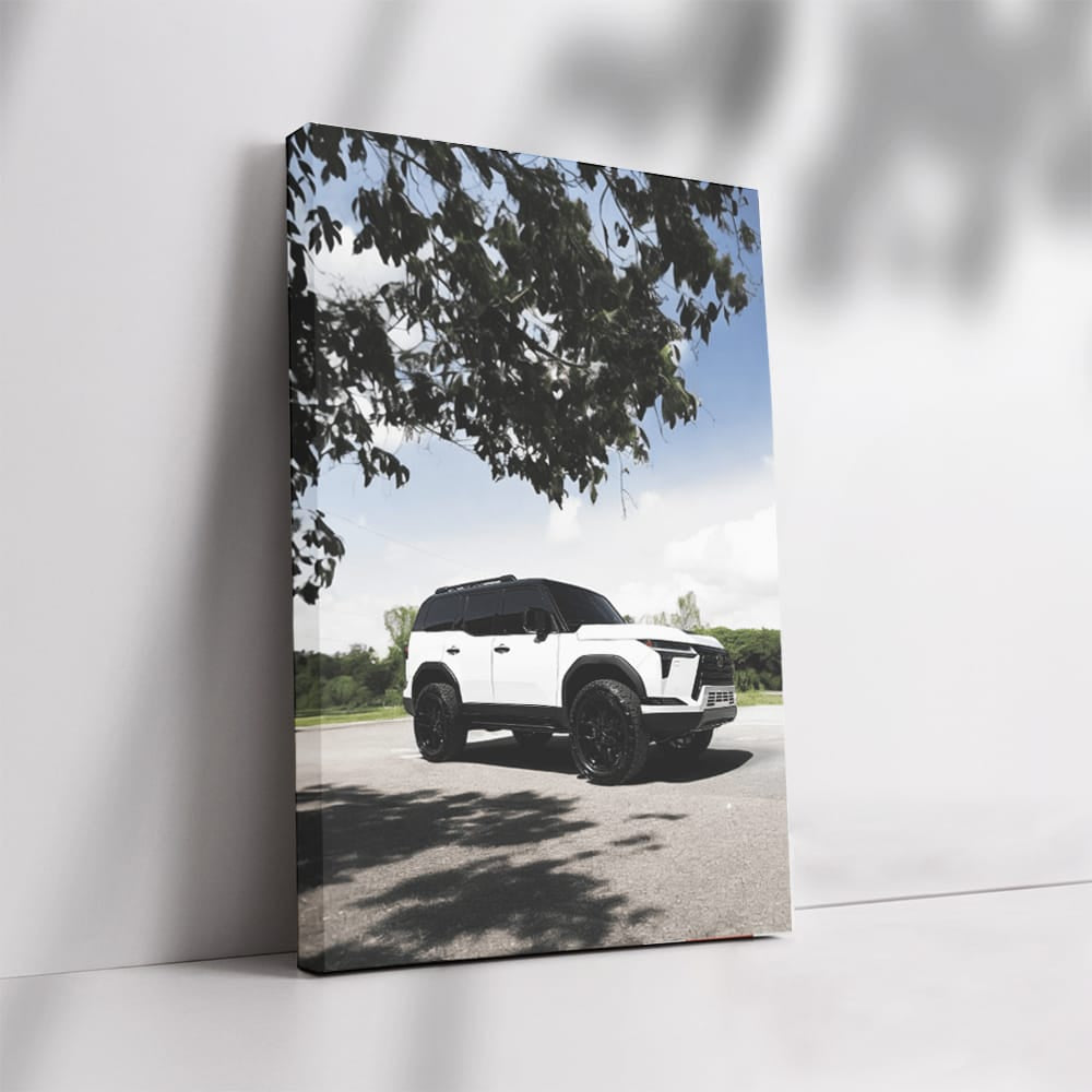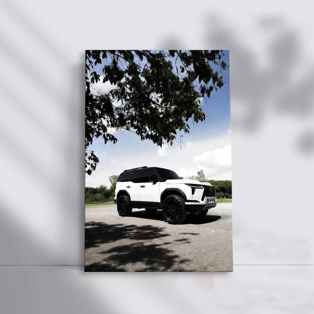Hey bro, check out this poster! It features a LEXUS GX550 OVERTRAIL tearing through the wilderness like a beast. This isn't just a painting, it's wall art for those who appreciate power and style. This is the kind of thing that decorates the garages of true car fans! See more from the collection: Lexus Art