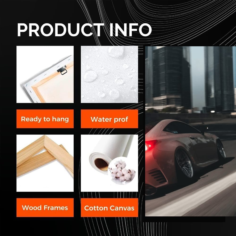 This is not just a poster, this is a painting for real car fans! This wall art shows a Lexus tearing up the city at night. The streets tremble from its roar, and the headlights cut through the darkness. This image is a challenge to everyone who loves speed and style. See more from the collection: Lexus Art