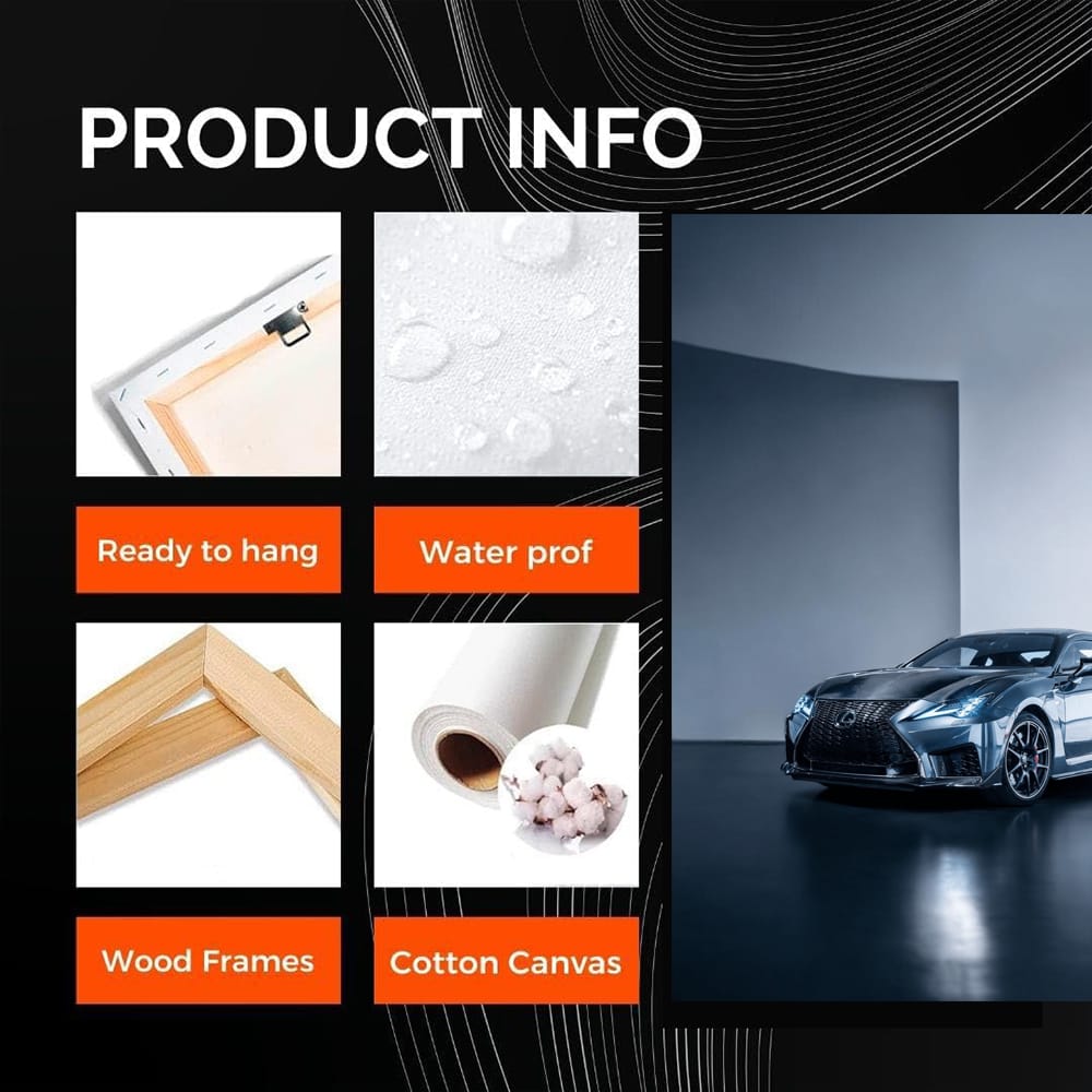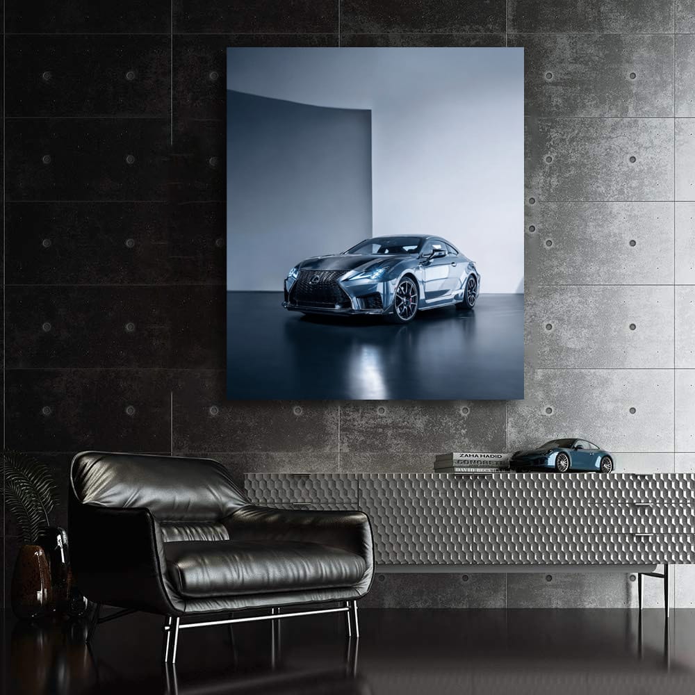 This painting is for real car fans. The Lexus RCF on the poster is not just a car, but a beast on wheels. Wall art that will pump up any wall, like a turbine pumps up an engine. This beauty is the perfect accent for a garage or a man's corner. See more from the collection: Lexus Art