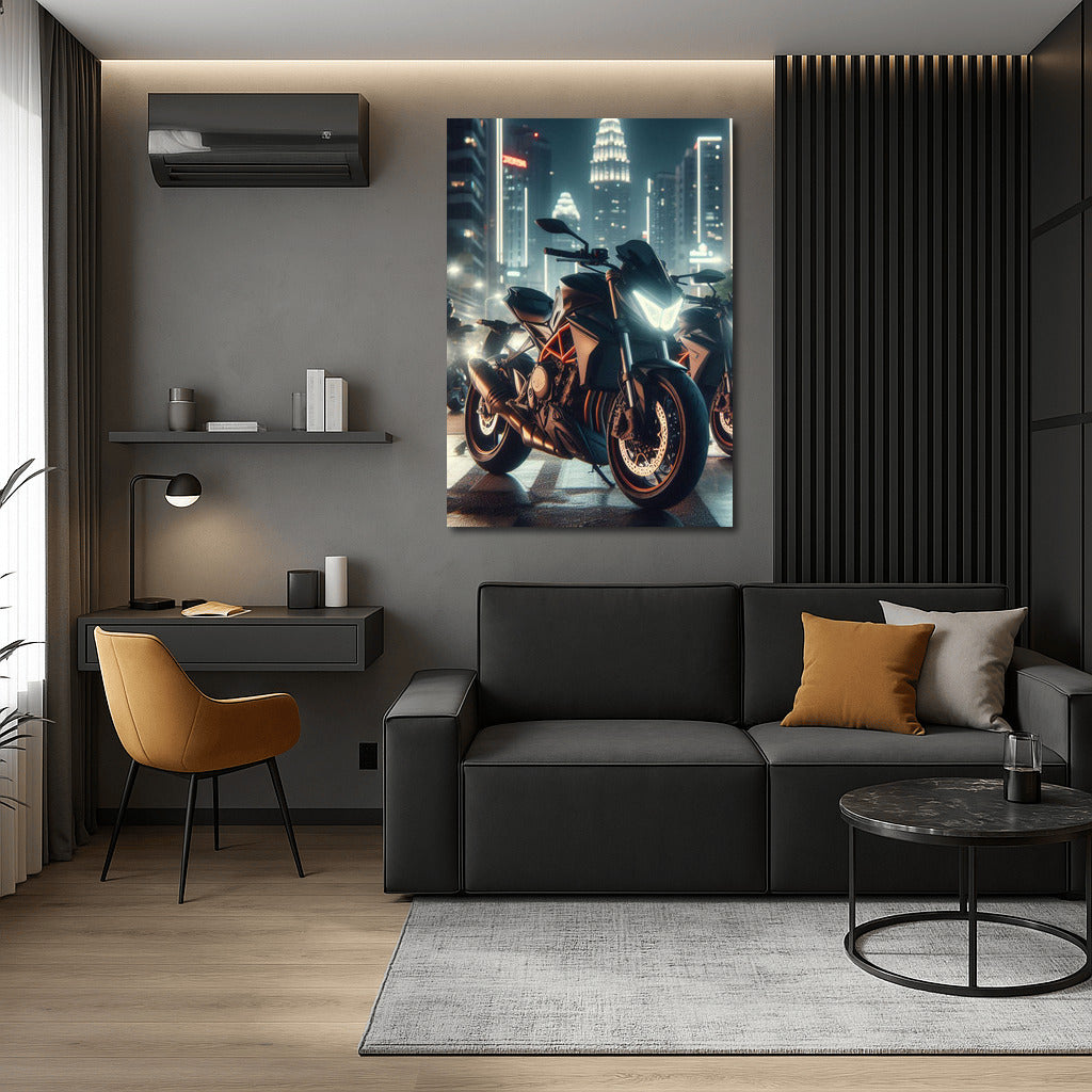 Light and Speed: Naked Bikes in the Night City Wall Art