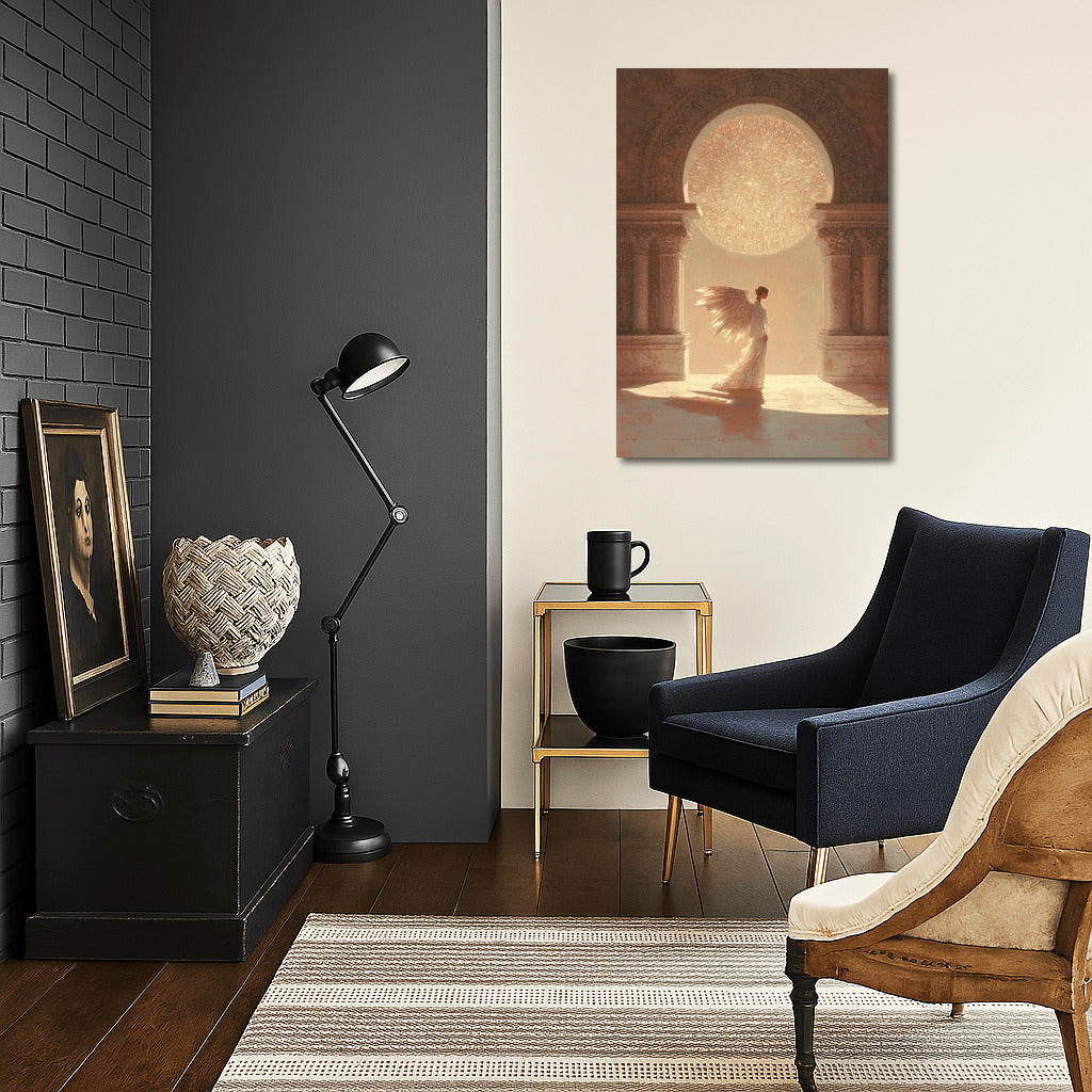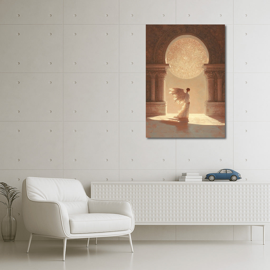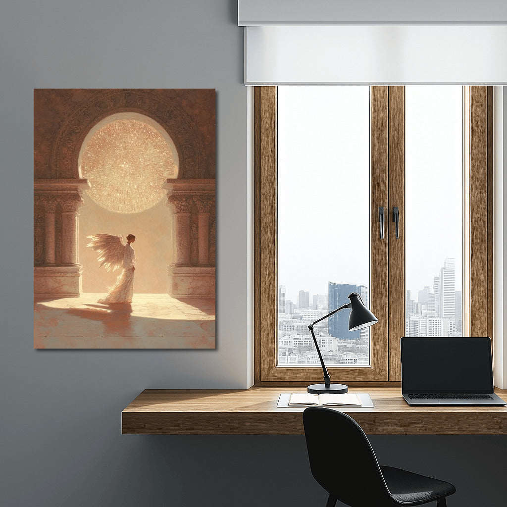 This magical angel in the rays of light poster is the perfect wall art to create an atmosphere of peace and light in your home. See more from the collection: Mixed Wall Art
