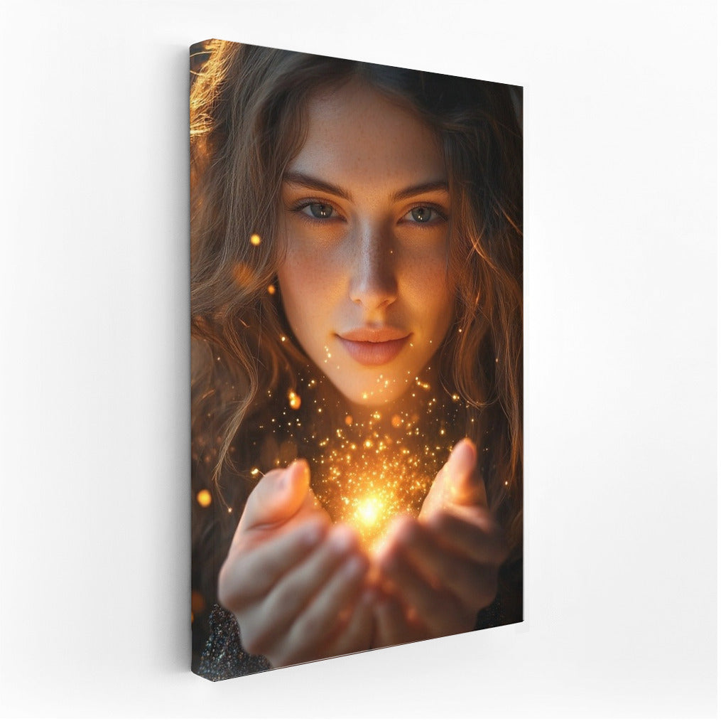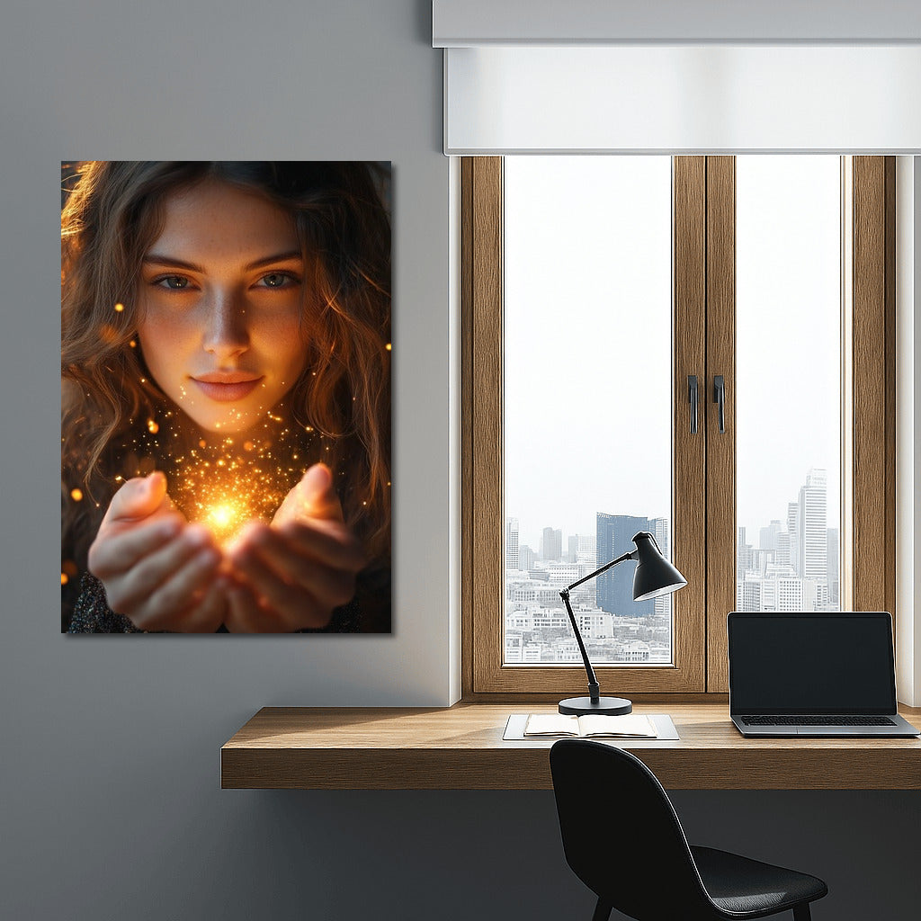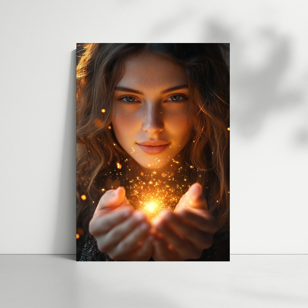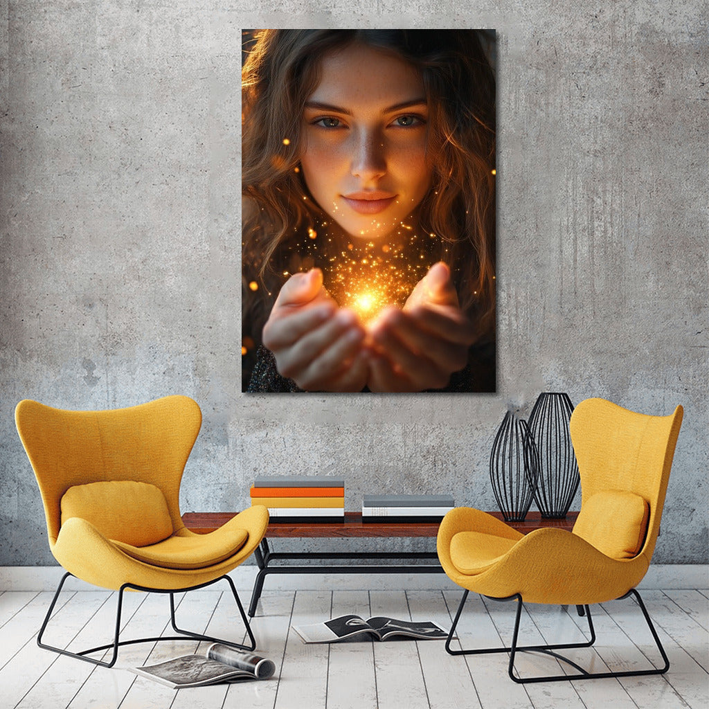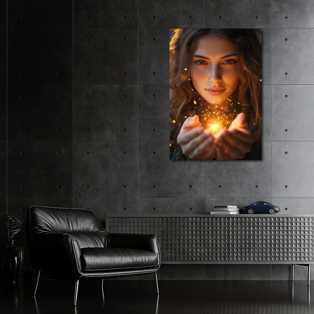 Amazing poster of a girl holding a magical light in her palms. Wall art that will liven up any space! ✨ See more from the collection: Wall Art with Women