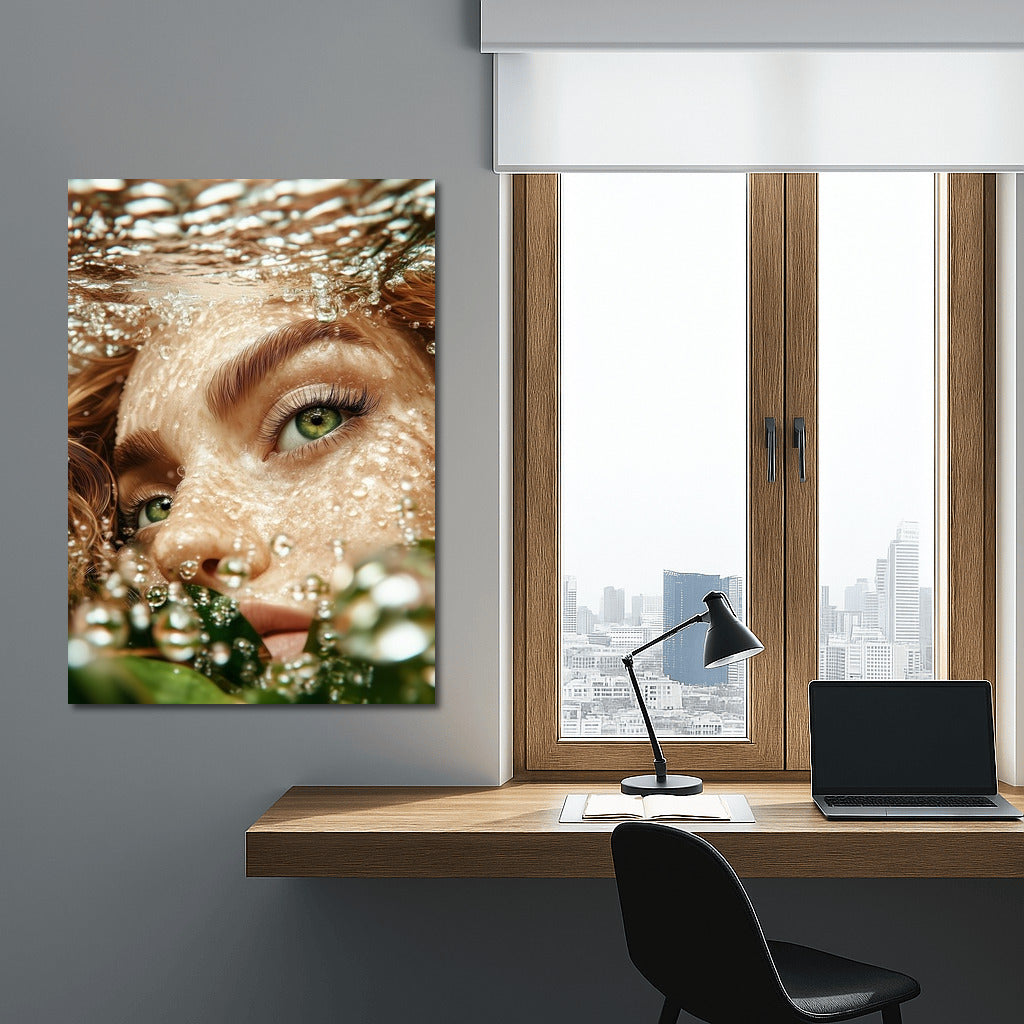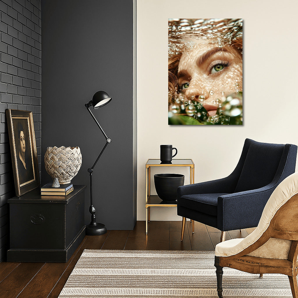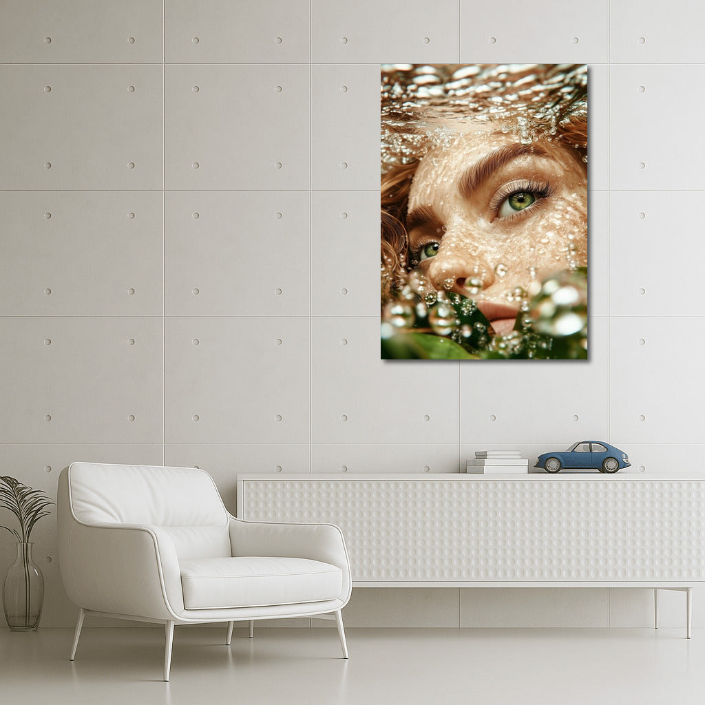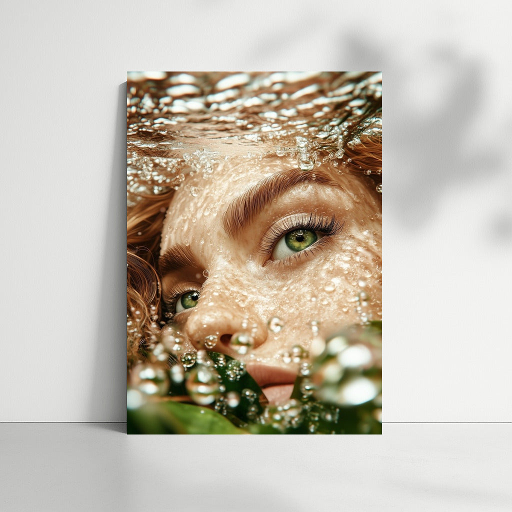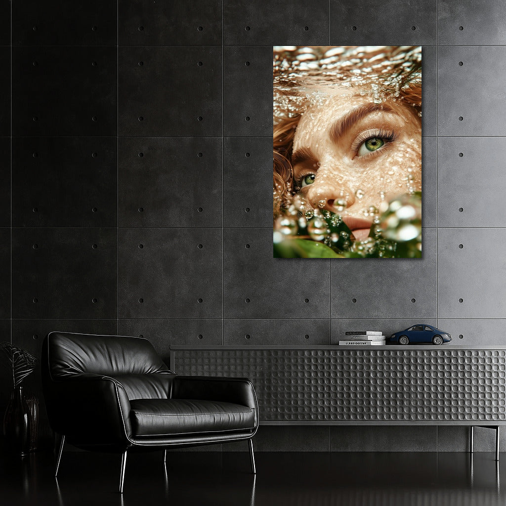 Dive into a watercolor dream: a poster with a play of light and bubbles that embodies the mystery and magic of the underwater world. Wall art. See more from the collection: Mixed Wall Art