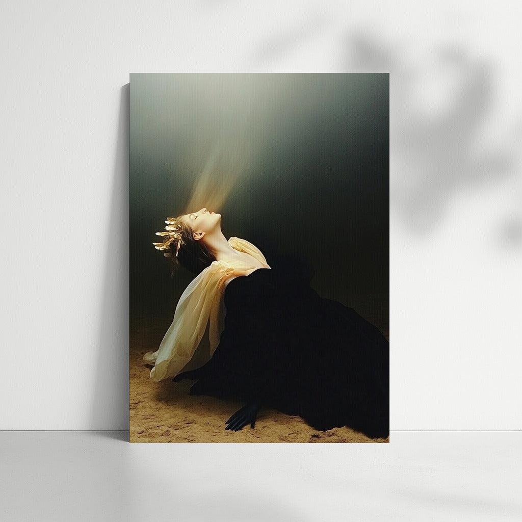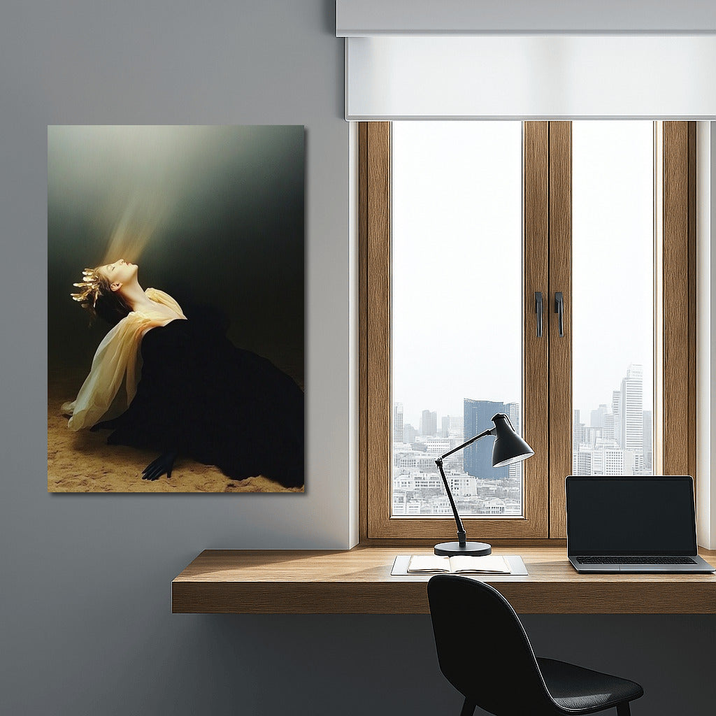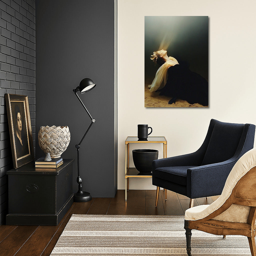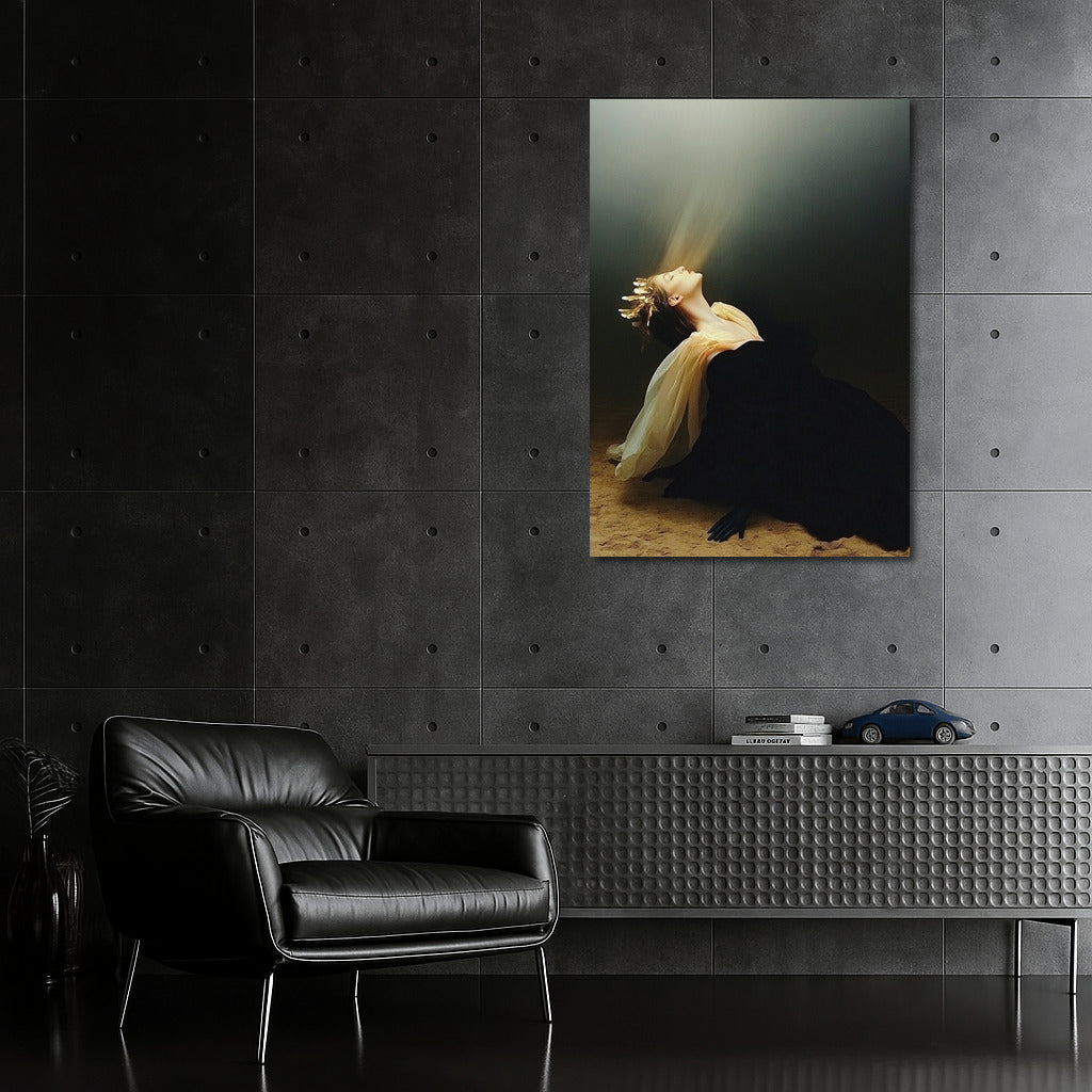 A mysterious painting: the light illuminates a figure lost in reverie. The perfect poster to create an atmospheric corner. See more from the collection: Mixed Wall Art