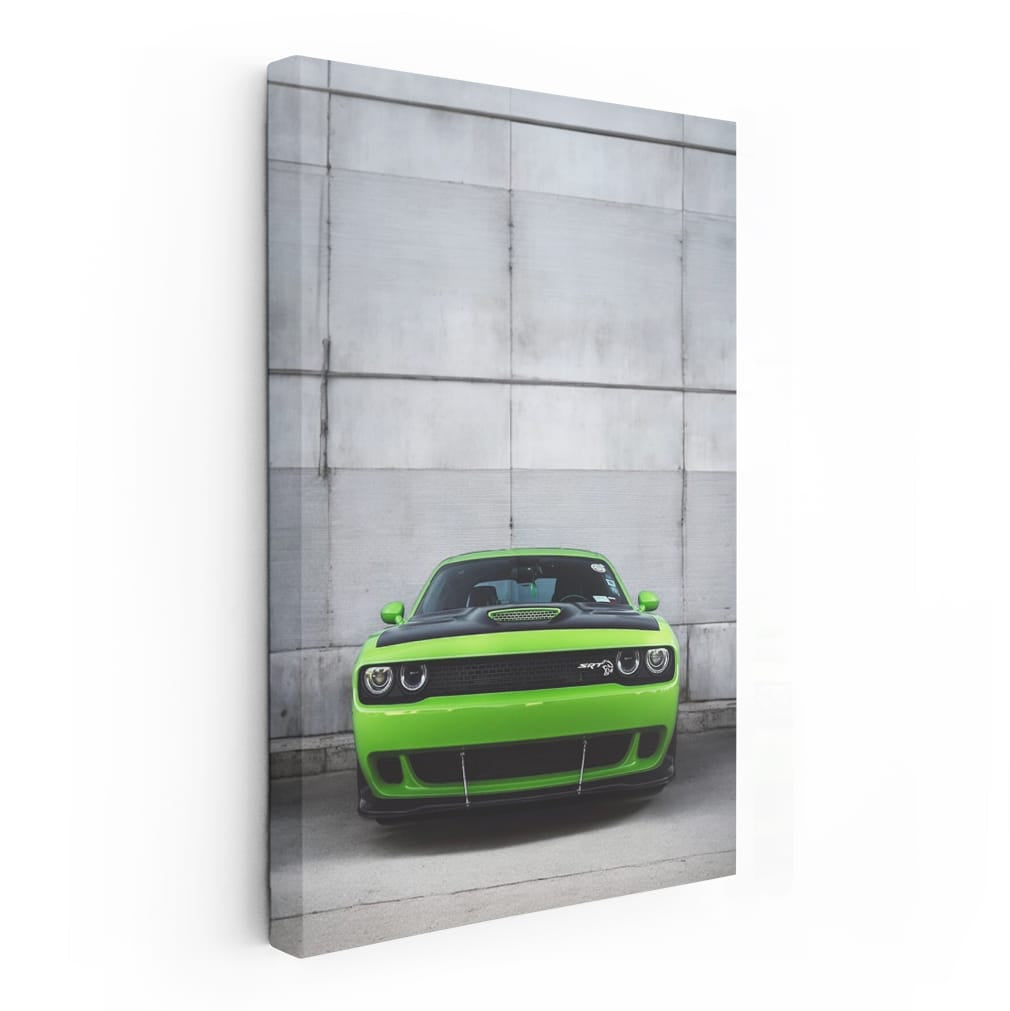 This painting is just a bomb! Dodge car in cool light green, as if it breaks out of the wall. Wall art for real car lovers. Hang this poster on the wall and get an adrenaline rush every time you look at it. It looks powerful, like the beast itself. See more from the collection: Dodge Art
