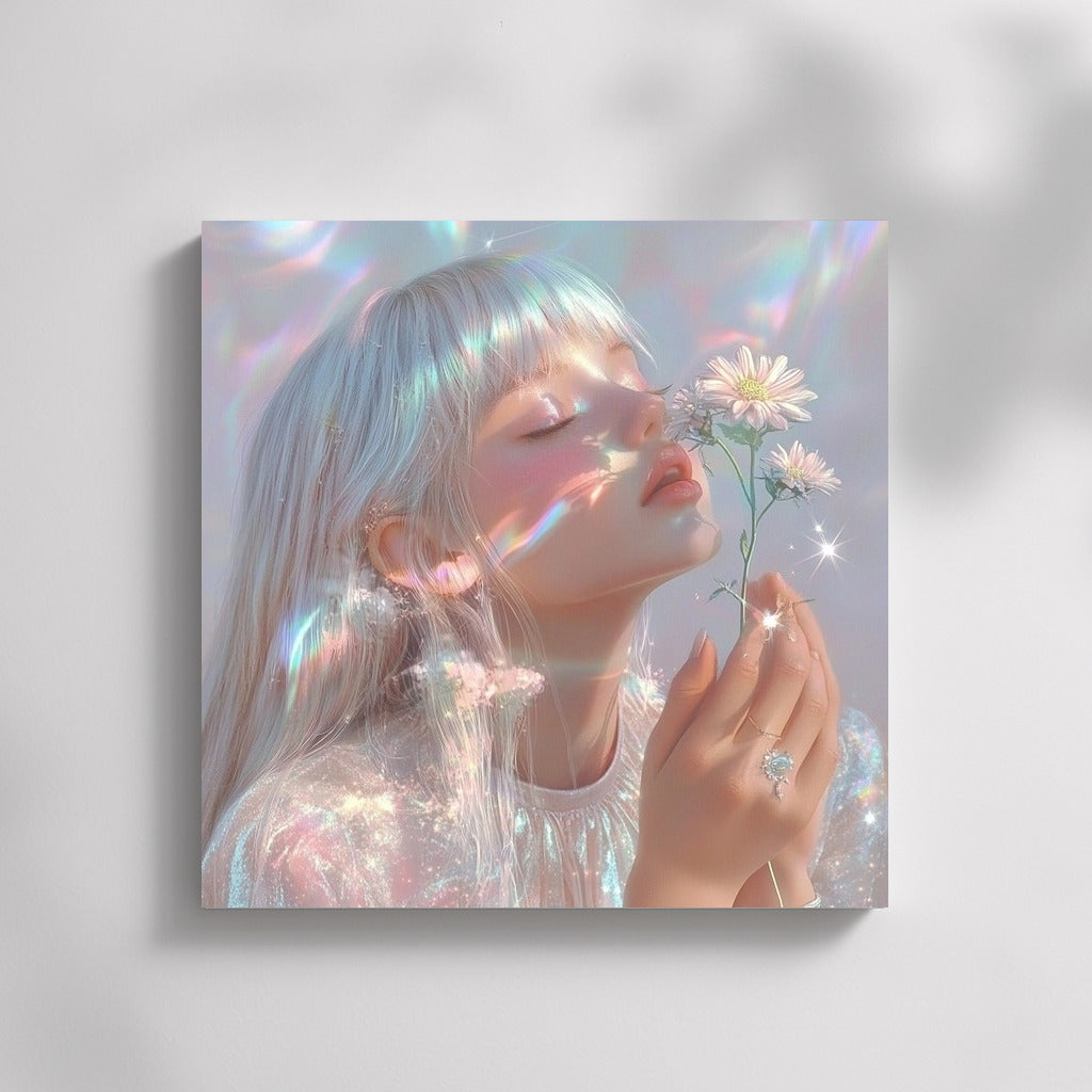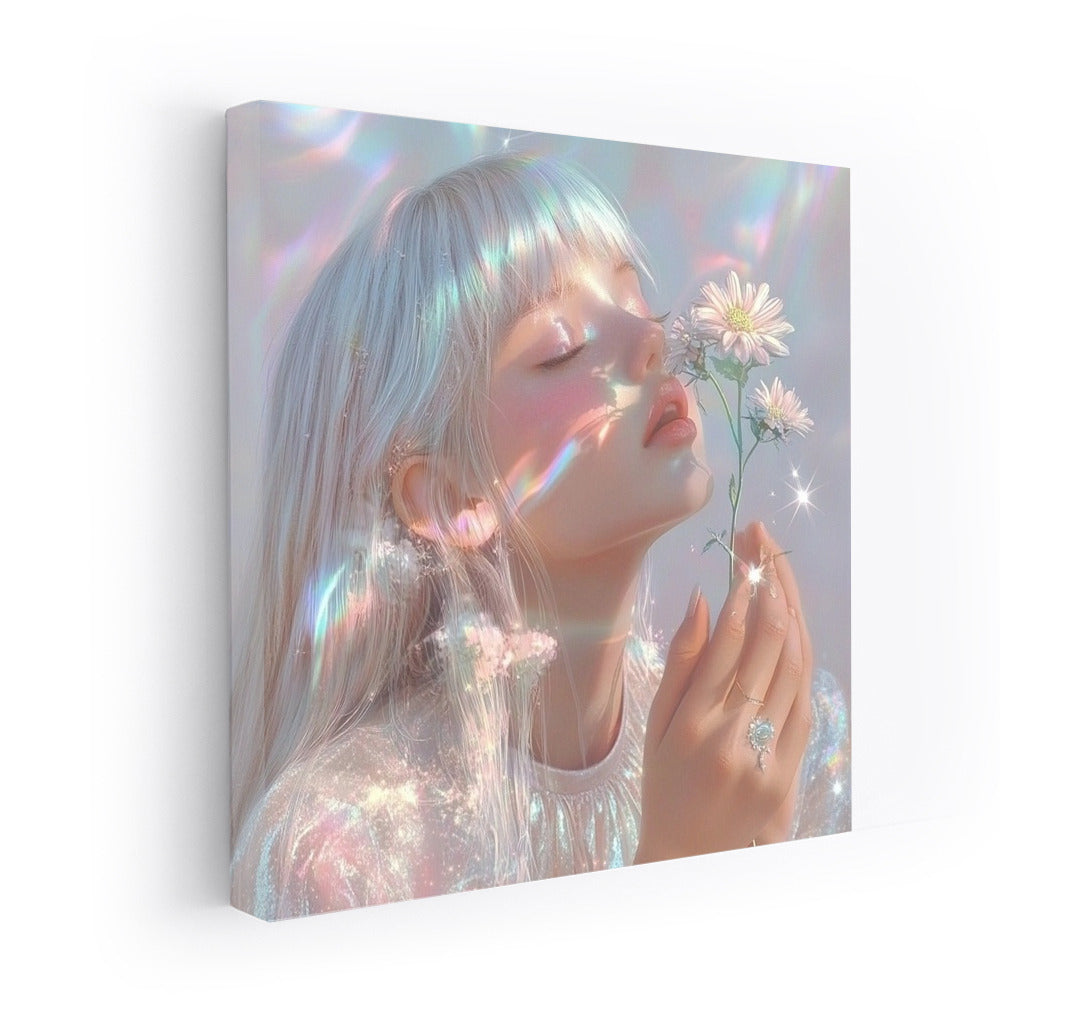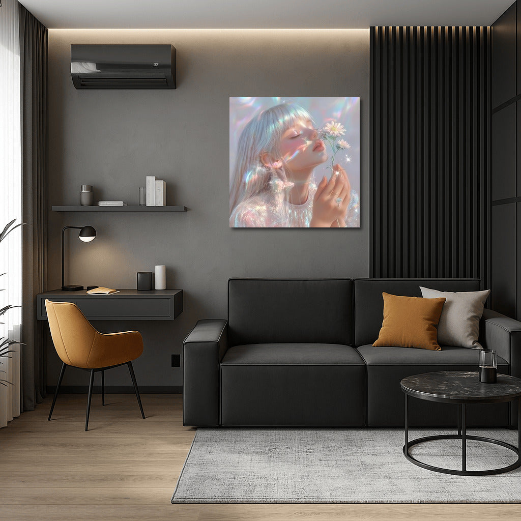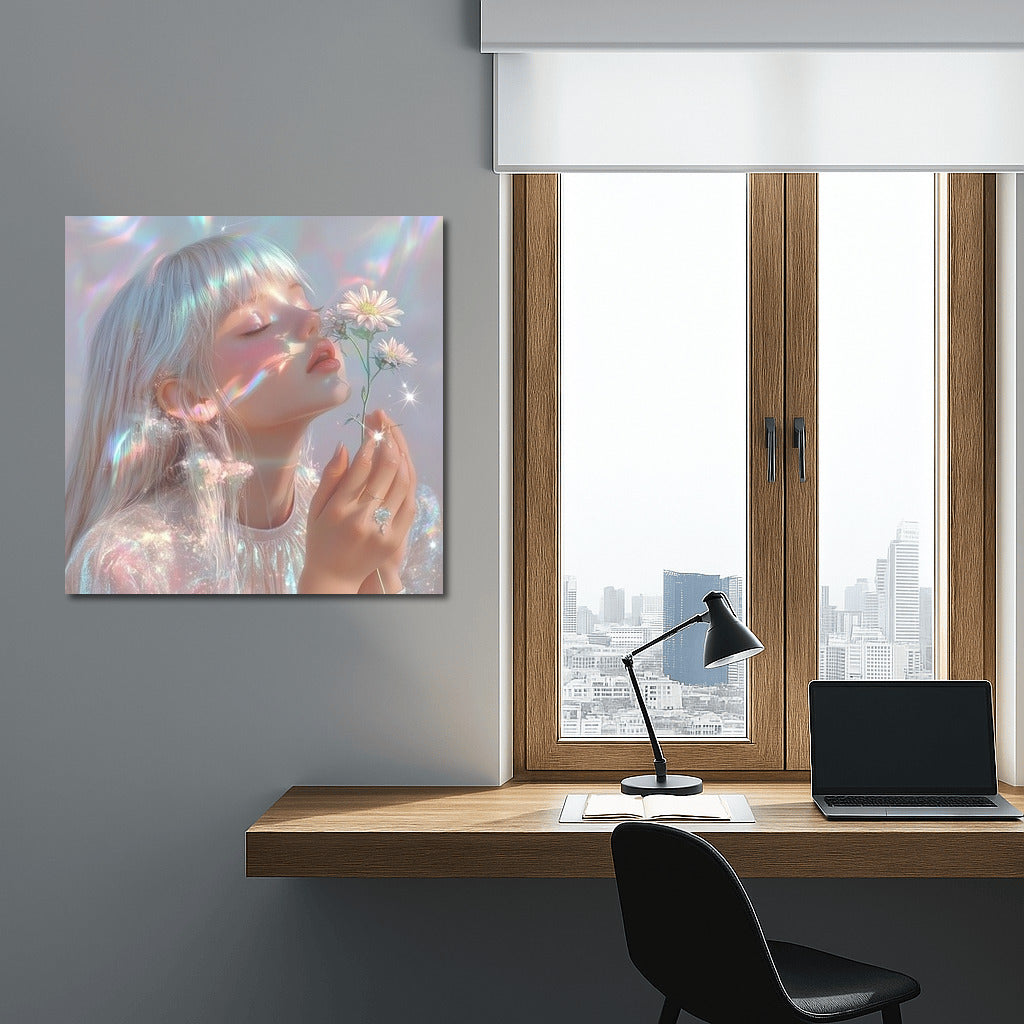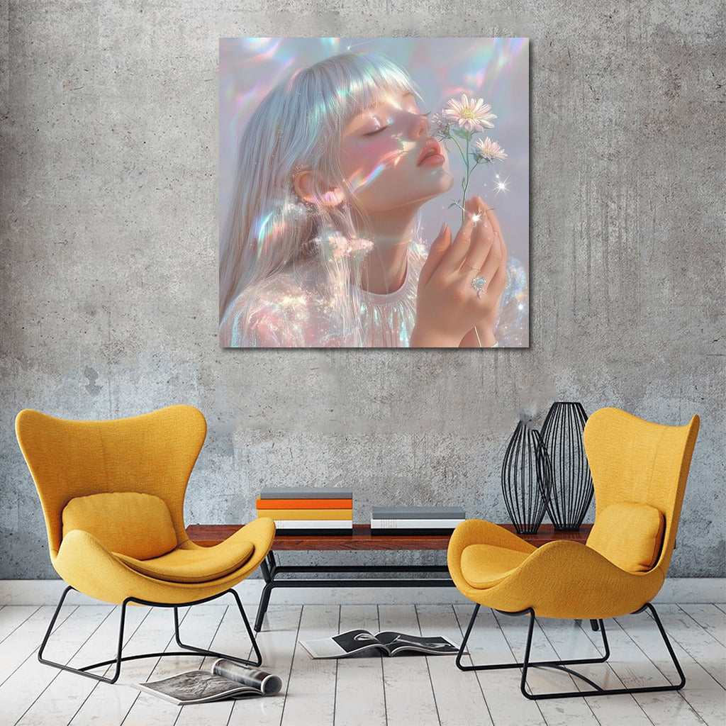 A graceful painting with a radiant dreaminess: a girl enjoying nature and light. Your perfect poster for inspiration! See more from the collection: Wall Art with Women