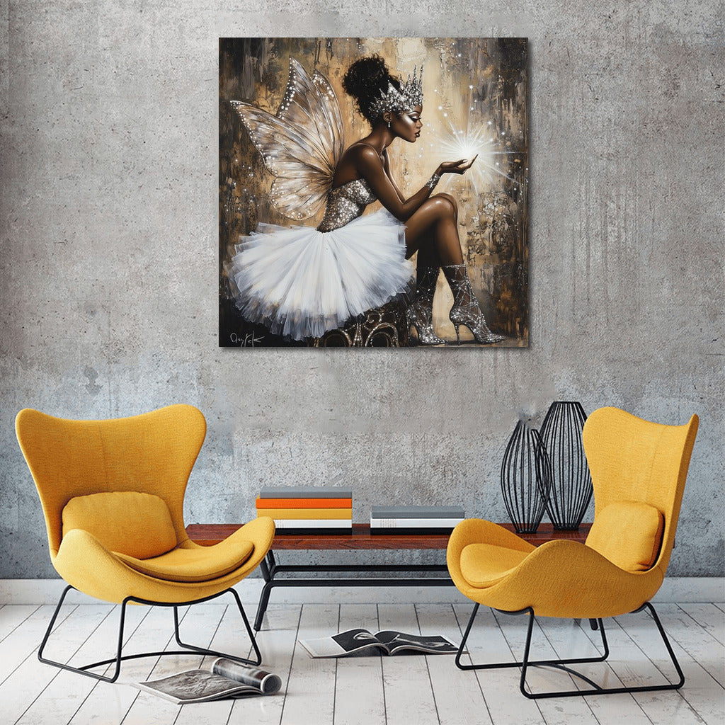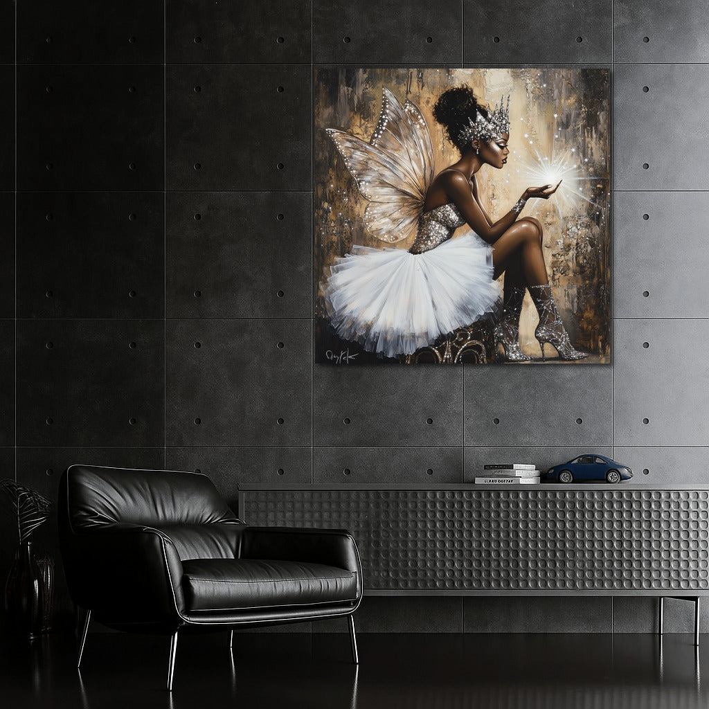 A graceful fairy in a glittering dress holds the light. This painting will become an inspiring accent of your wall art. See more from the collection: Mixed Wall Art