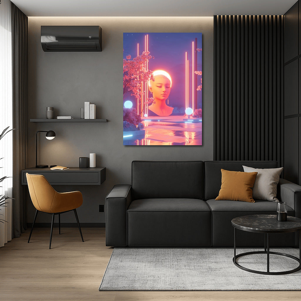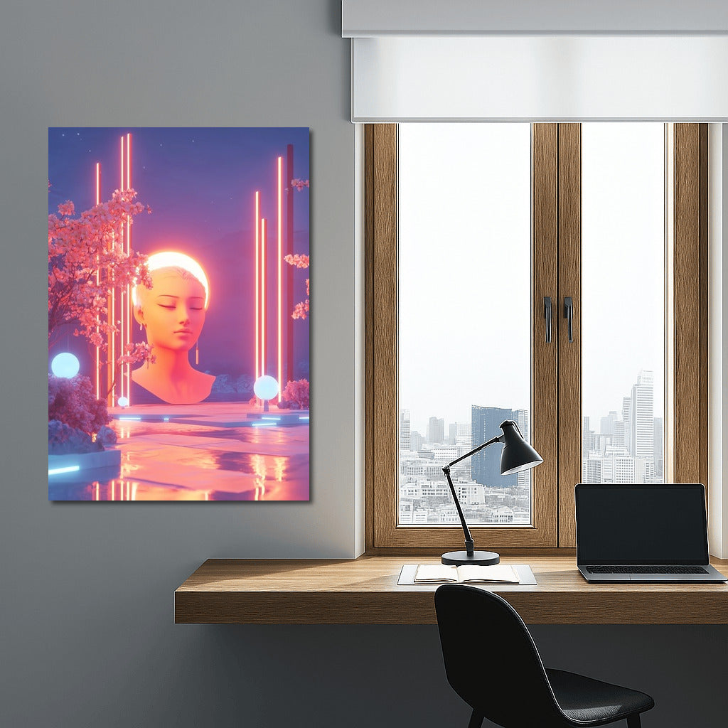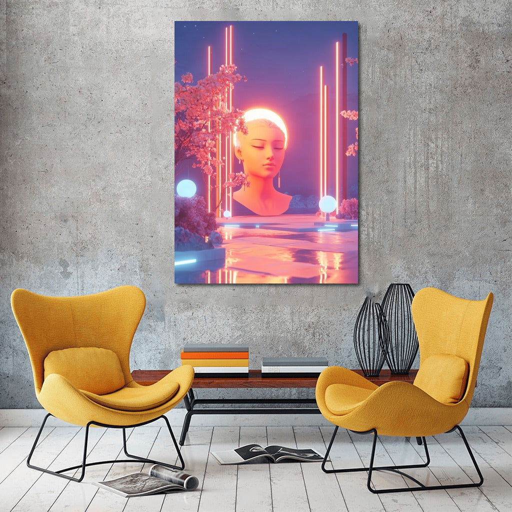 Immerse yourself in neon magic: a poster with a dreamy girl under blooming trees creates an atmosphere of calm and harmony. See more from the collection: Mixed Wall Art
