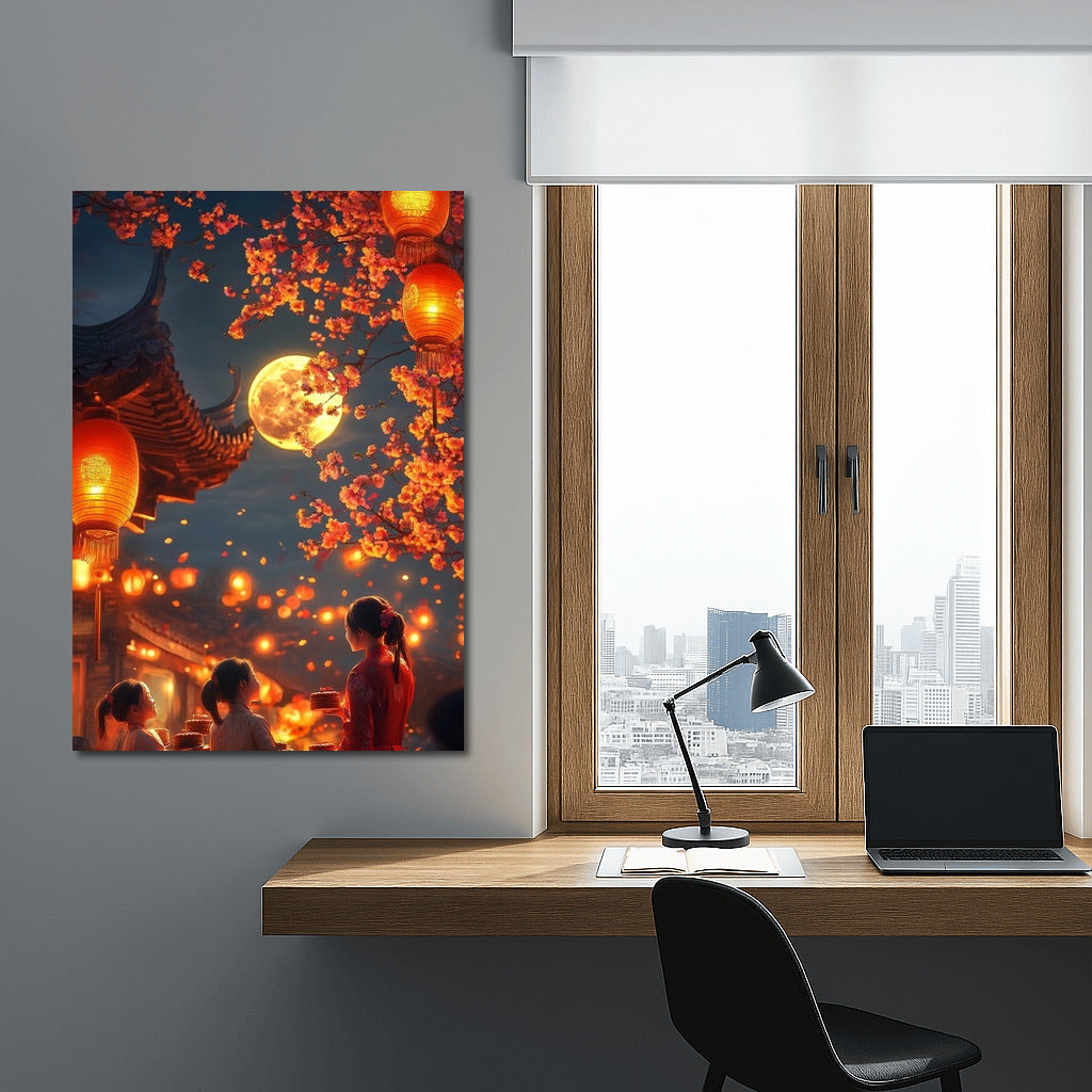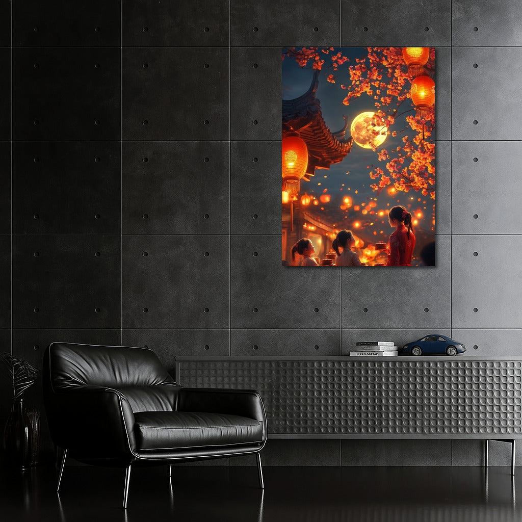Moonlit night and flowers, lantern light and harmony. This poster is the embodiment of the magic of Eastern culture for your interior. See more from the collection: Mixed Wall Art