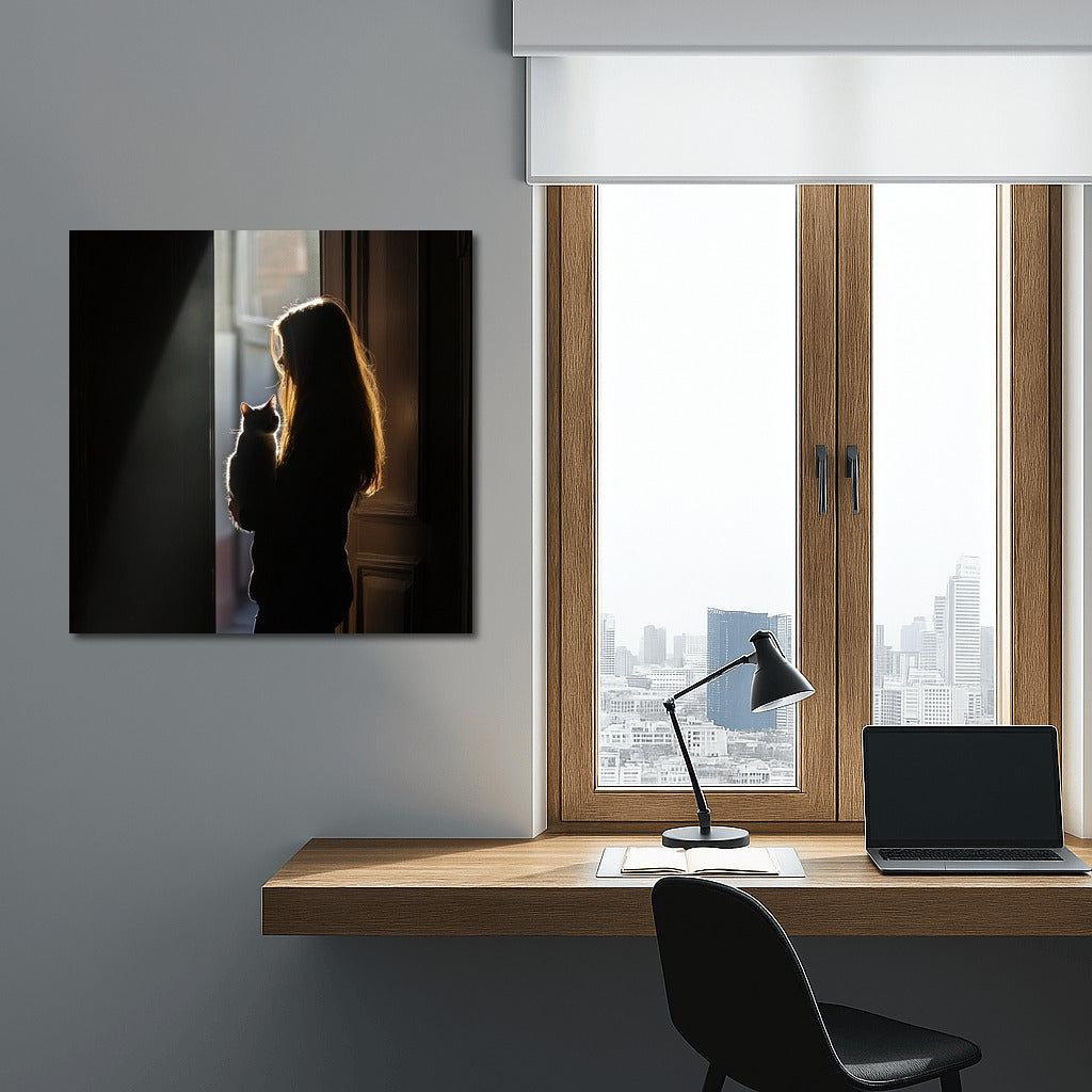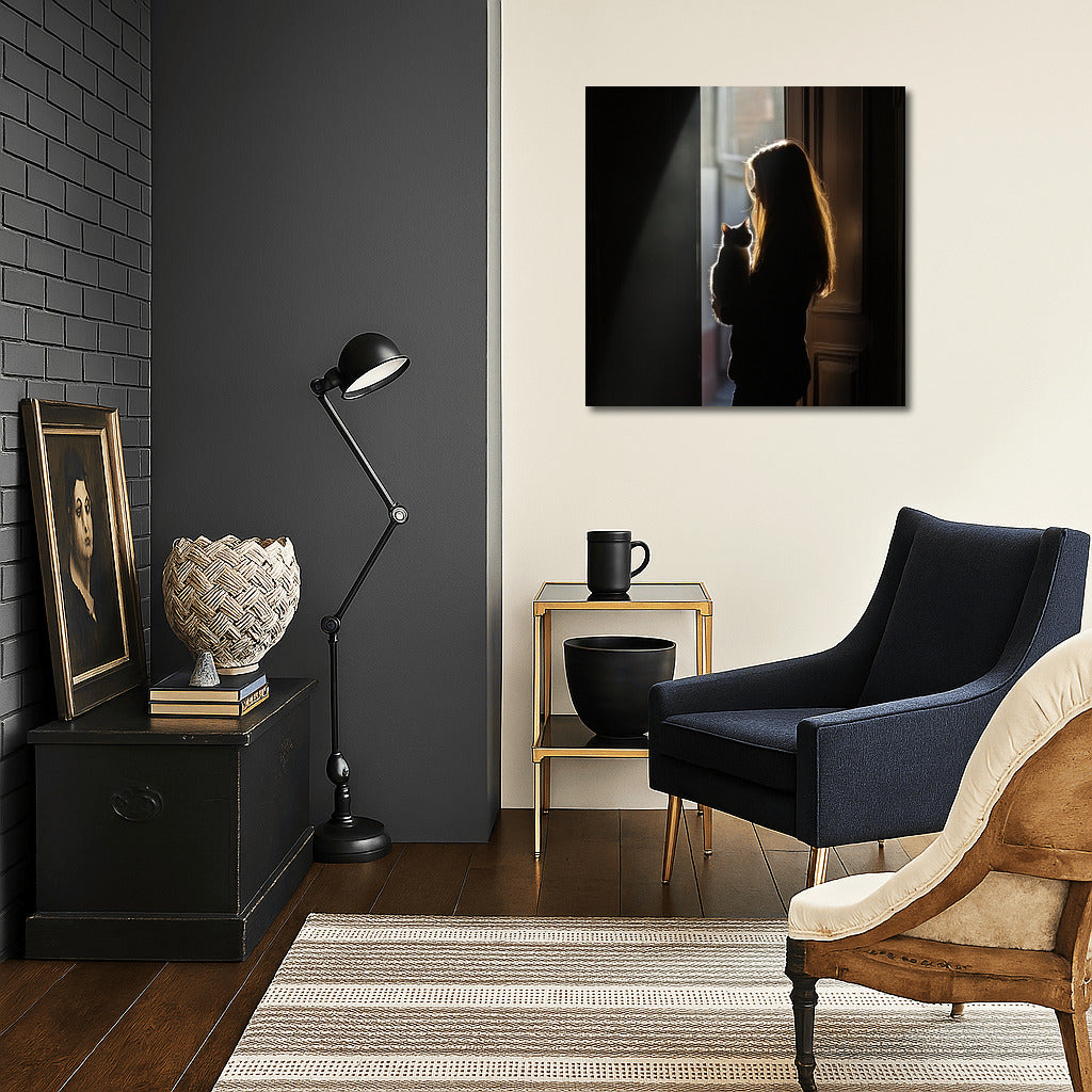 An elegant painting: a silhouette in the rays of light, creating an atmosphere of calm. Give comfort with this wall art! See more from the collection: Mixed Wall Art