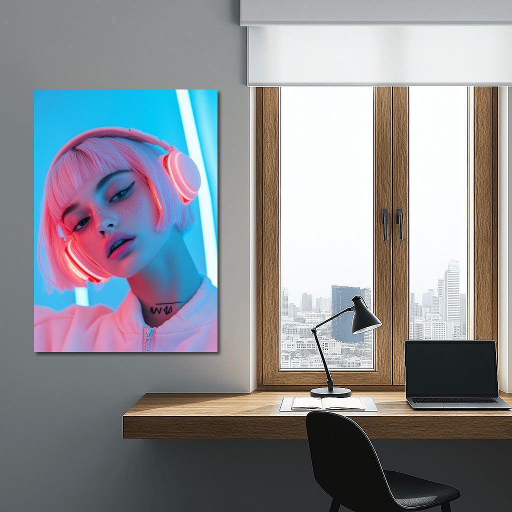 Vibrant poster: neon magic and stylish inspiration. Contemporary wall art that brings space to life. See more from the collection: Wall Art with Women