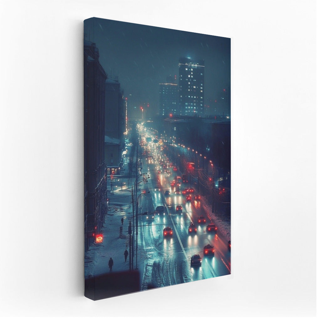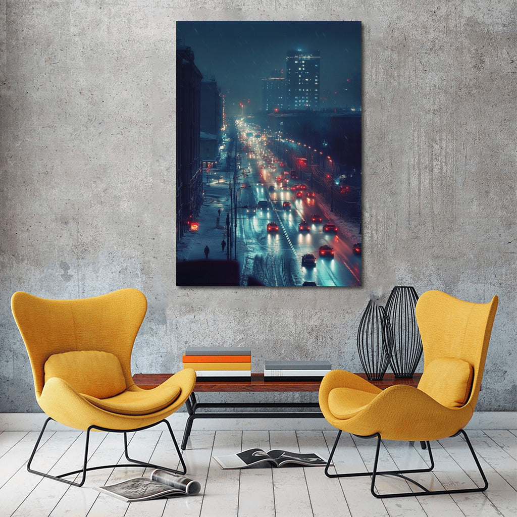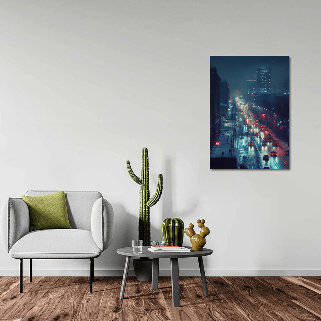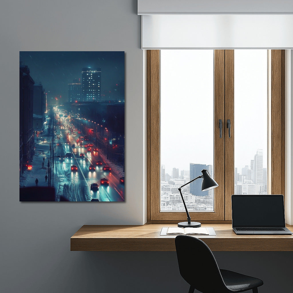 The city at night comes alive with headlights and lights - a dynamic poster that adds urban chic to your wall art. See more from the collection: Mixed Wall Art