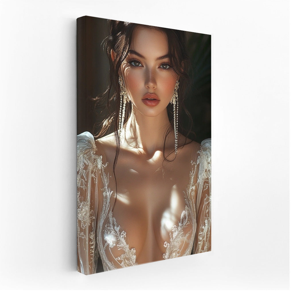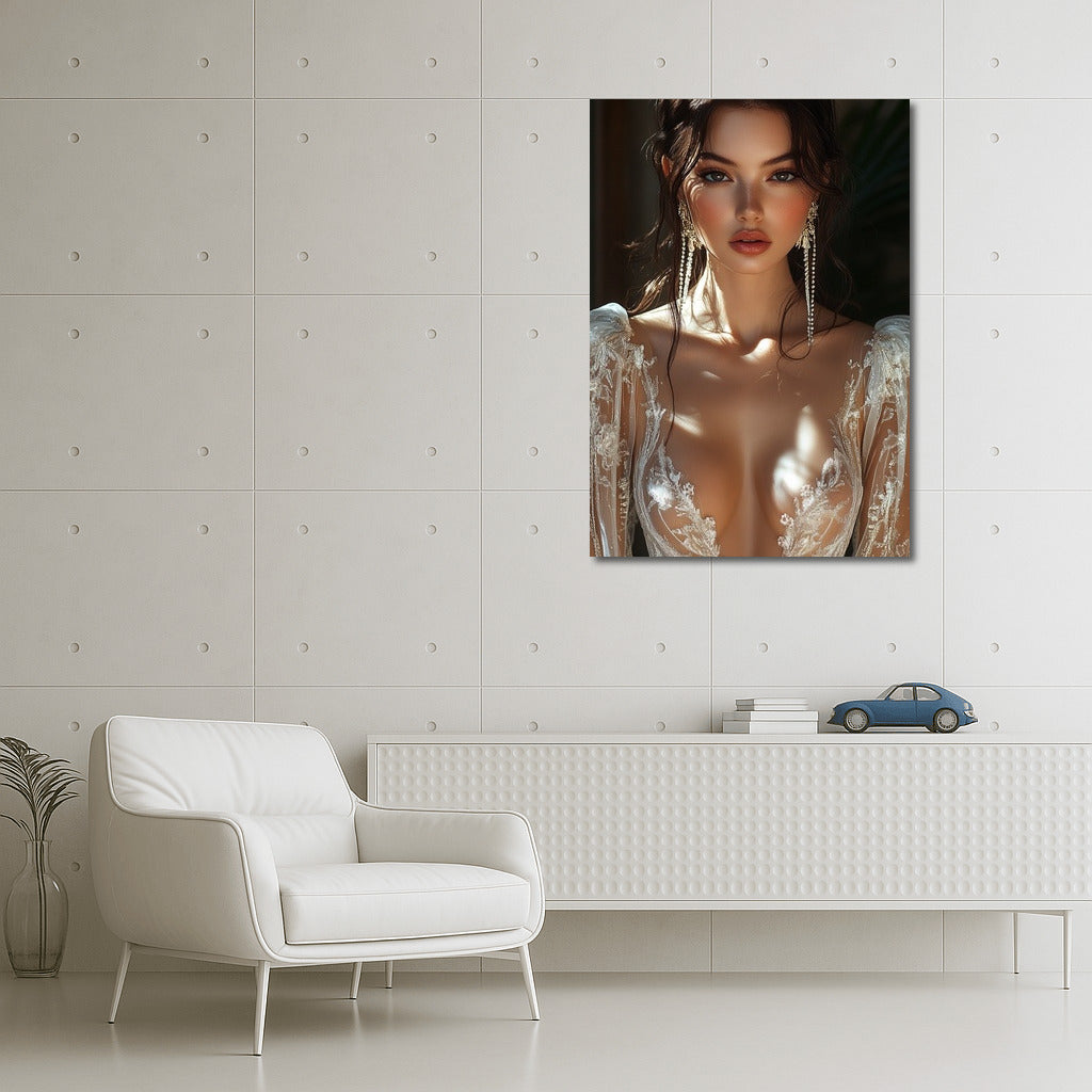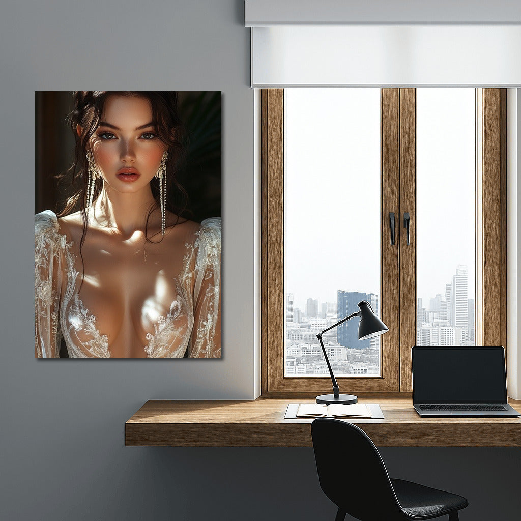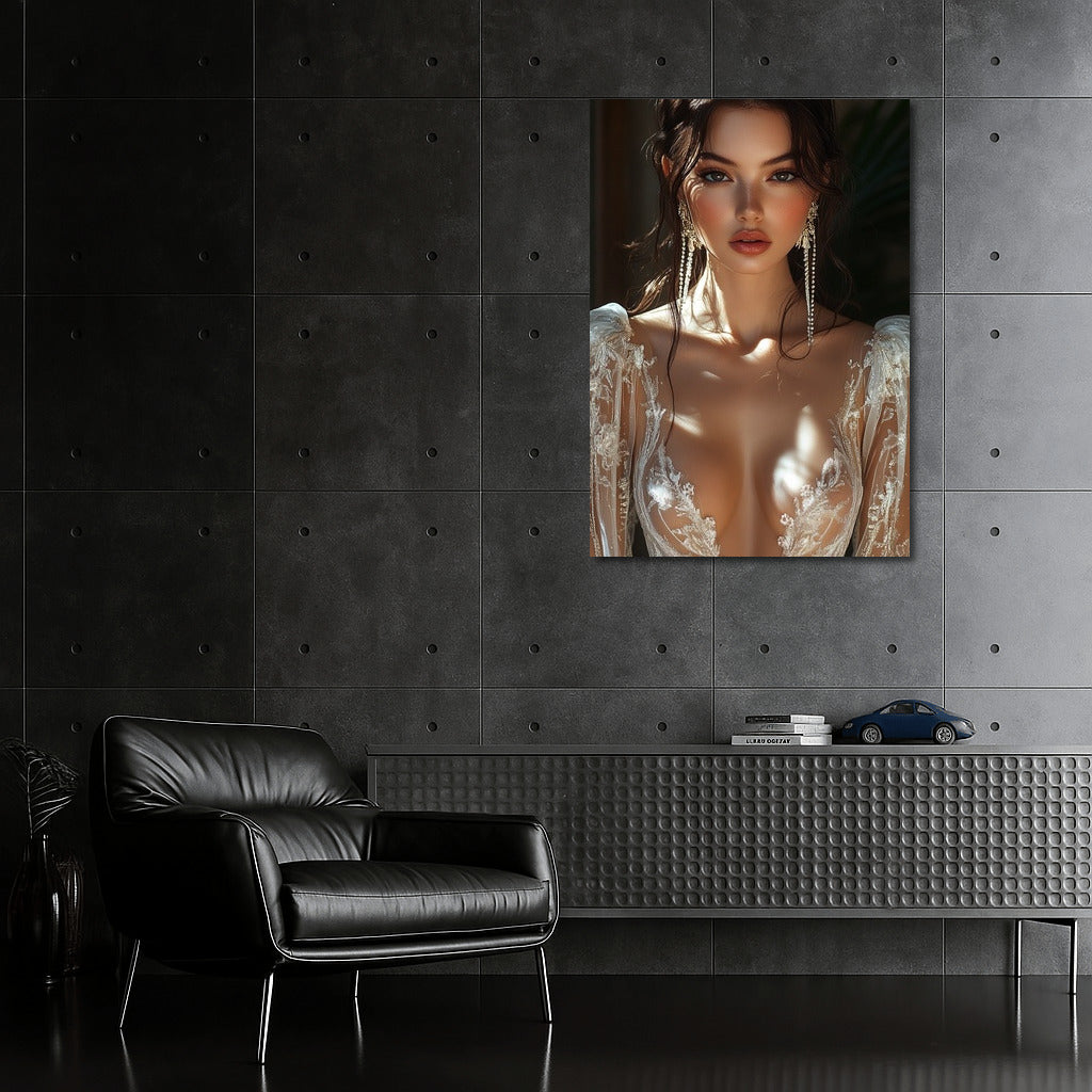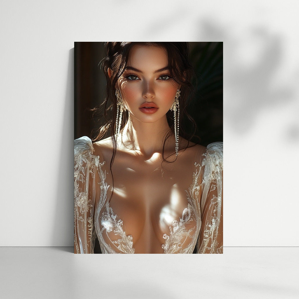 An elegant painting: a mysterious image in the rays of light, will enliven any space. The perfect poster for your interior! See more from the collection: Wall Art with Women