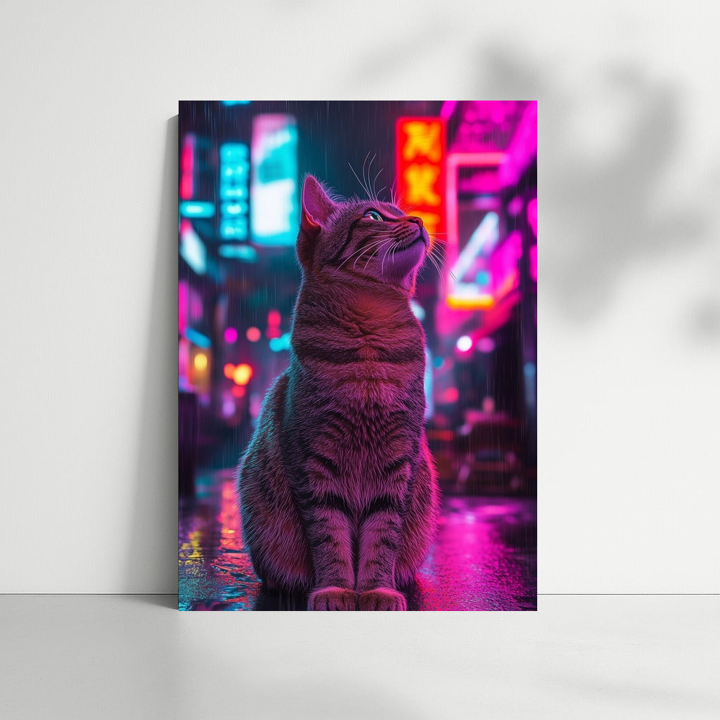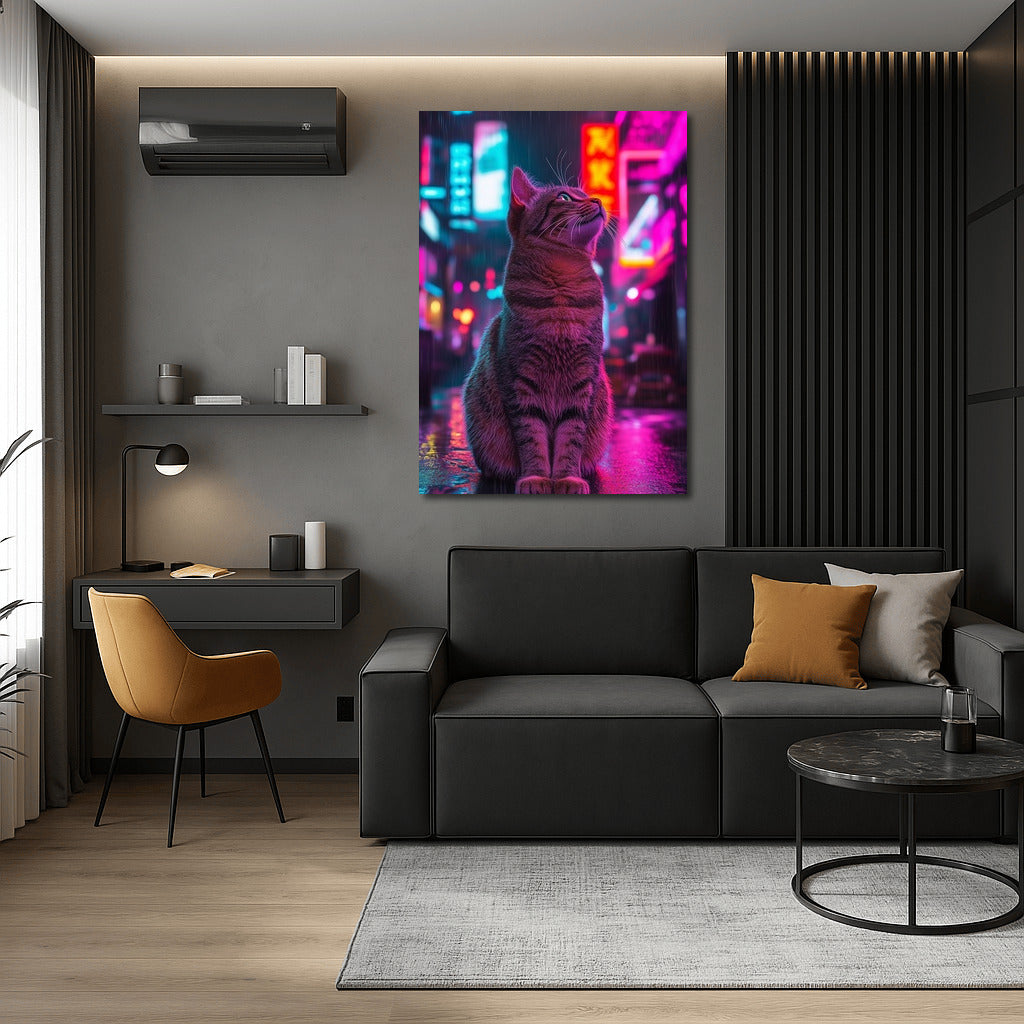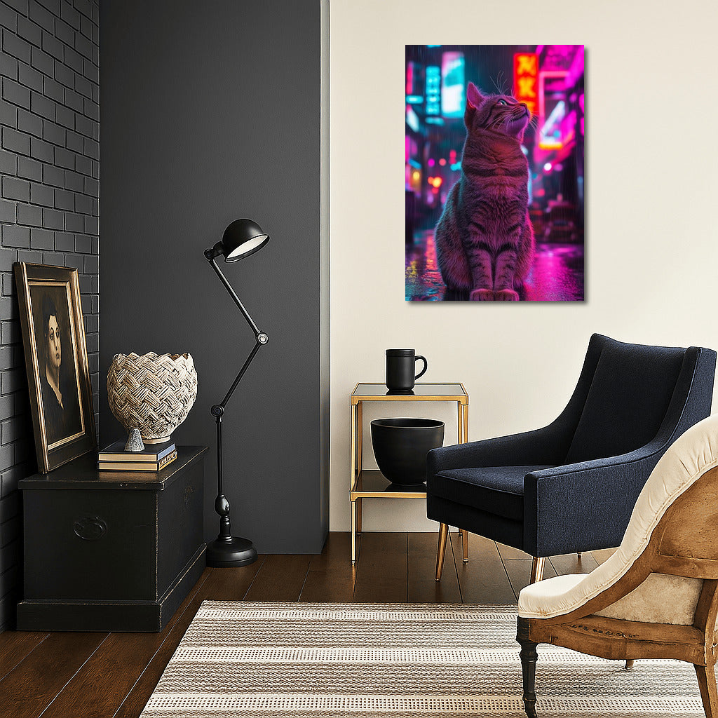 Neon City and Cat: Street Magic on a Poster. Wall art that brings the space to life with bright colors and mystery. See more from the collection: Neon Art