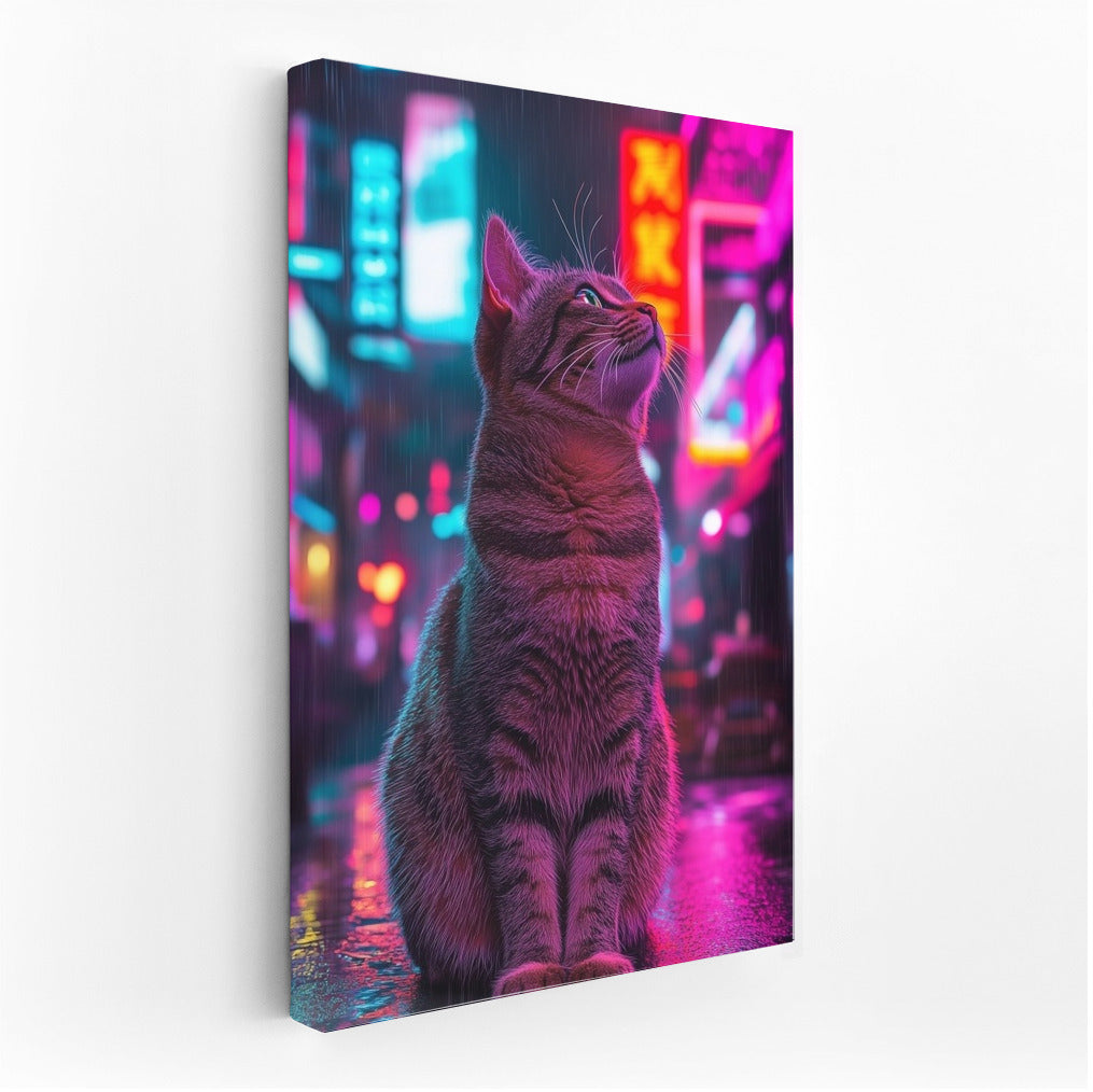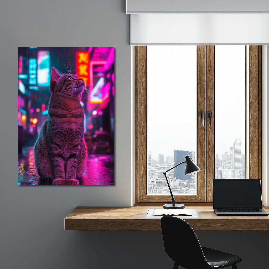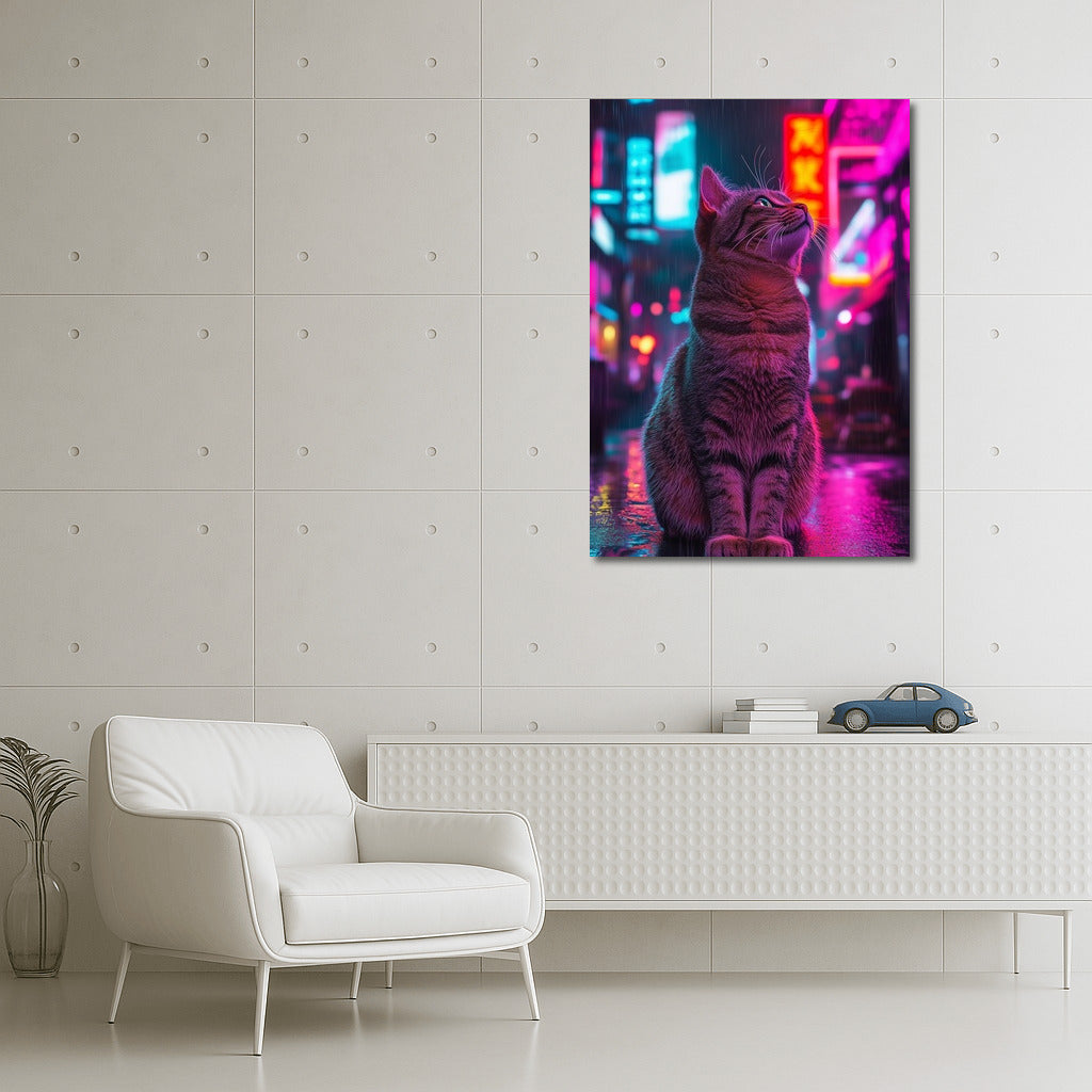 Neon City and Cat: Street Magic on a Poster. Wall art that brings the space to life with bright colors and mystery. See more from the collection: Neon Art