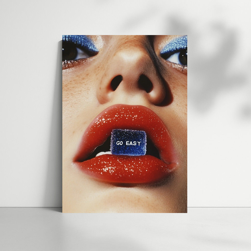 A captivating poster with vibrant details, a play of color and texture. Wall art that says Go Easy. See more from the collection: Mixed Wall Art
