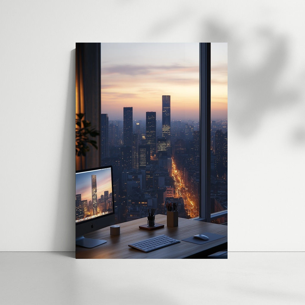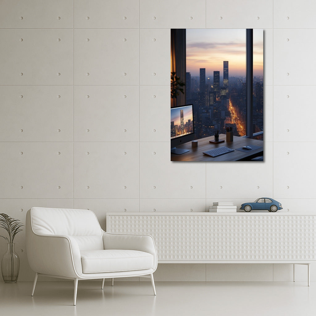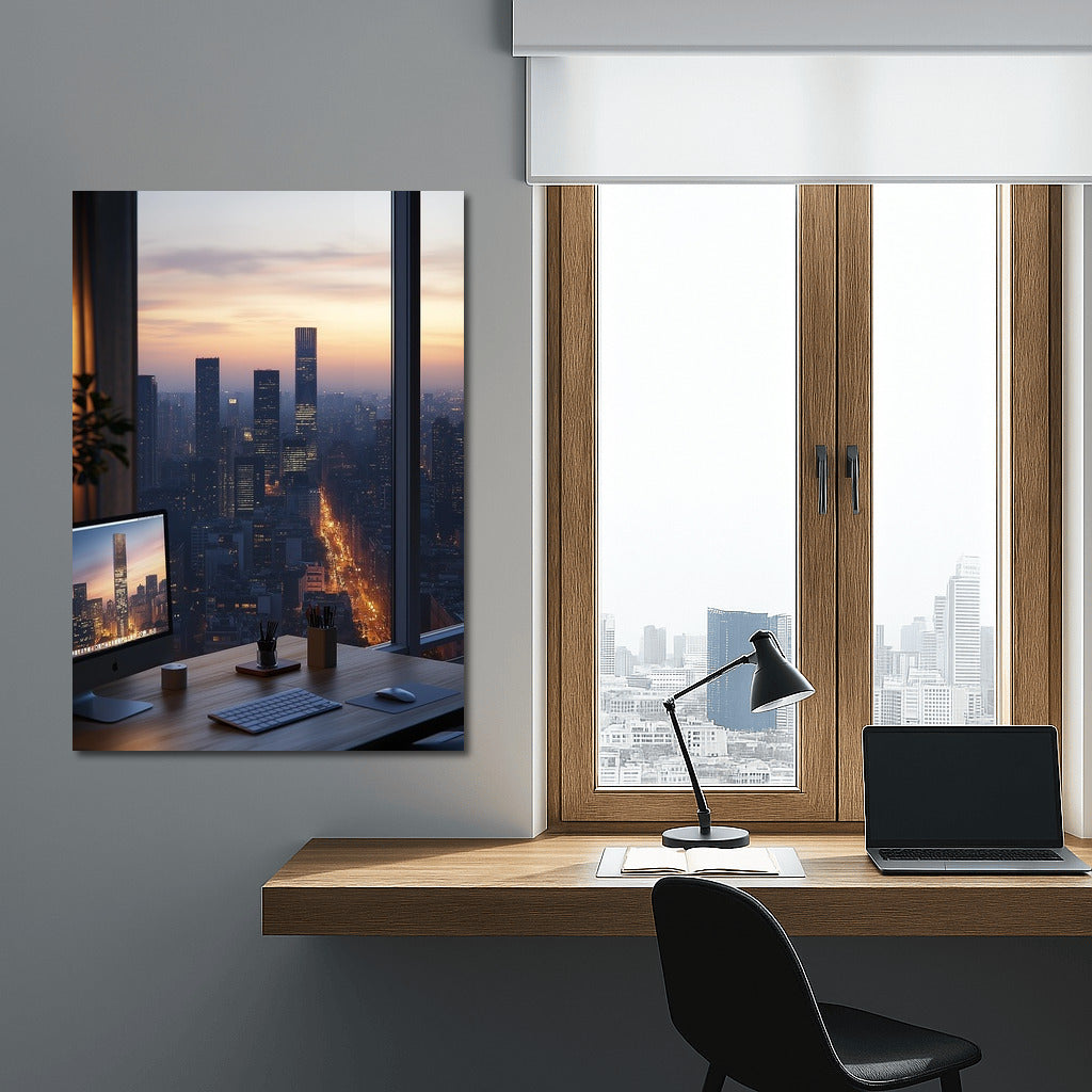 The twilight metropolis outside the window comes alive in the light of the lights. Wall art that will take you to the heart of the city night. See more from the collection: City at Night Art