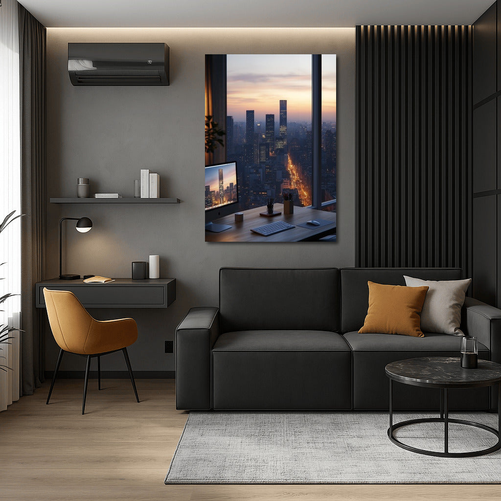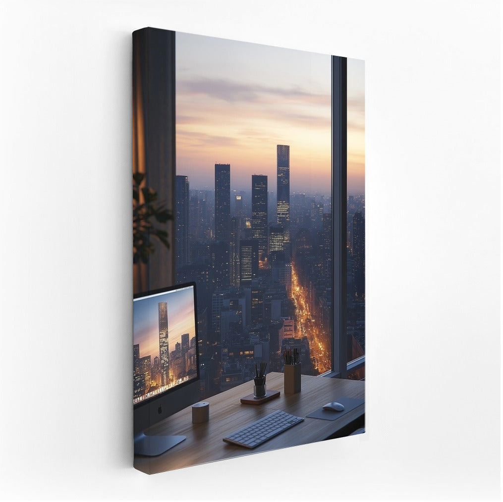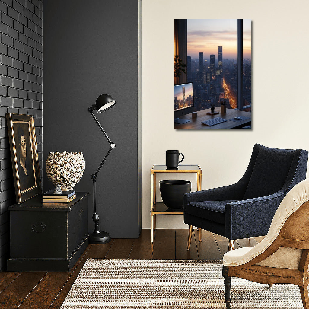 The twilight metropolis outside the window comes alive in the light of the lights. Wall art that will take you to the heart of the city night. See more from the collection: City at Night Art
