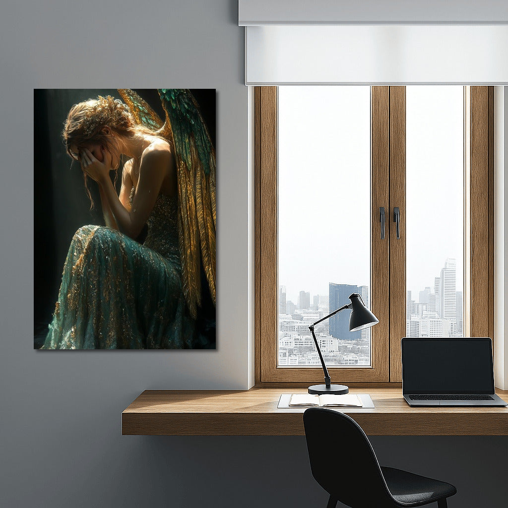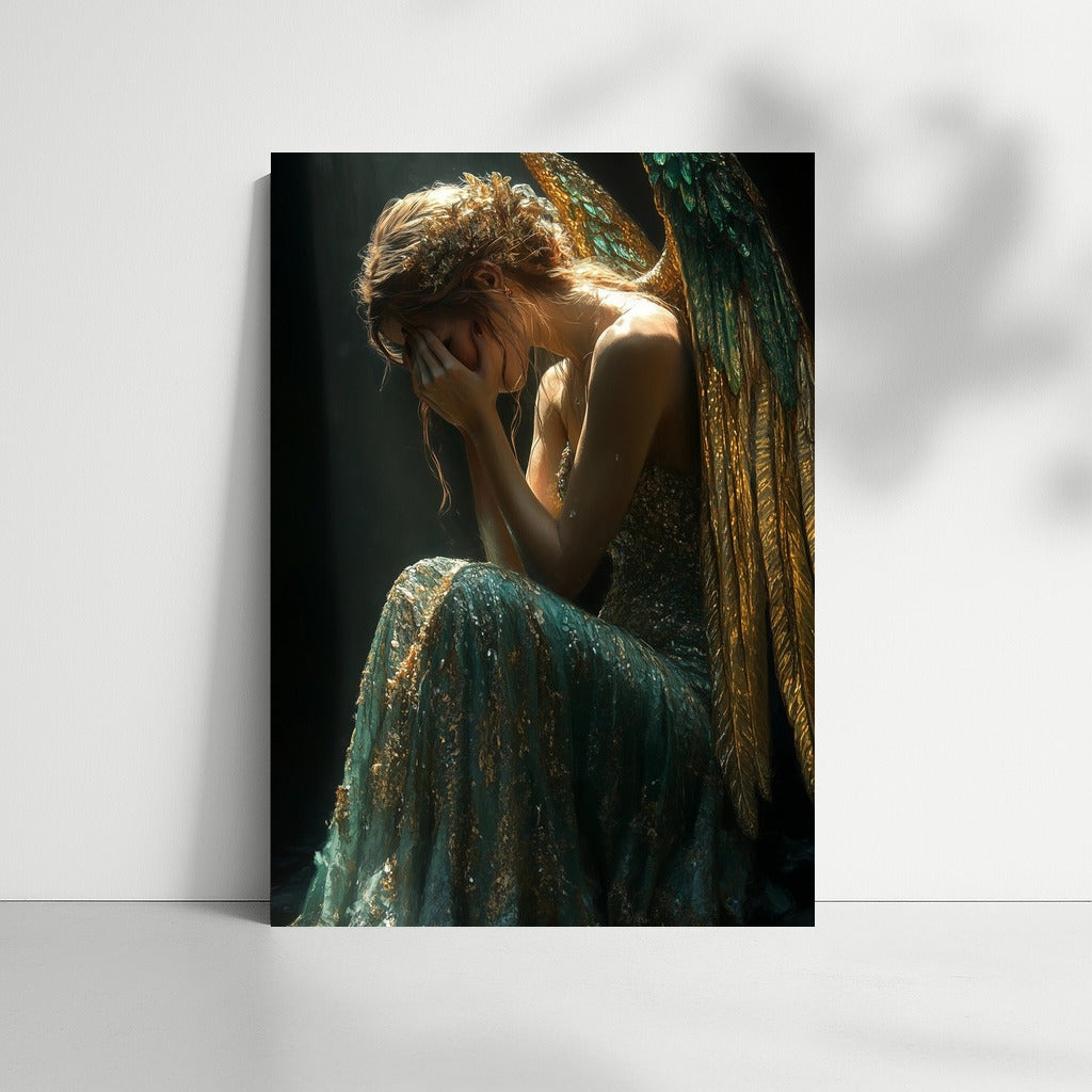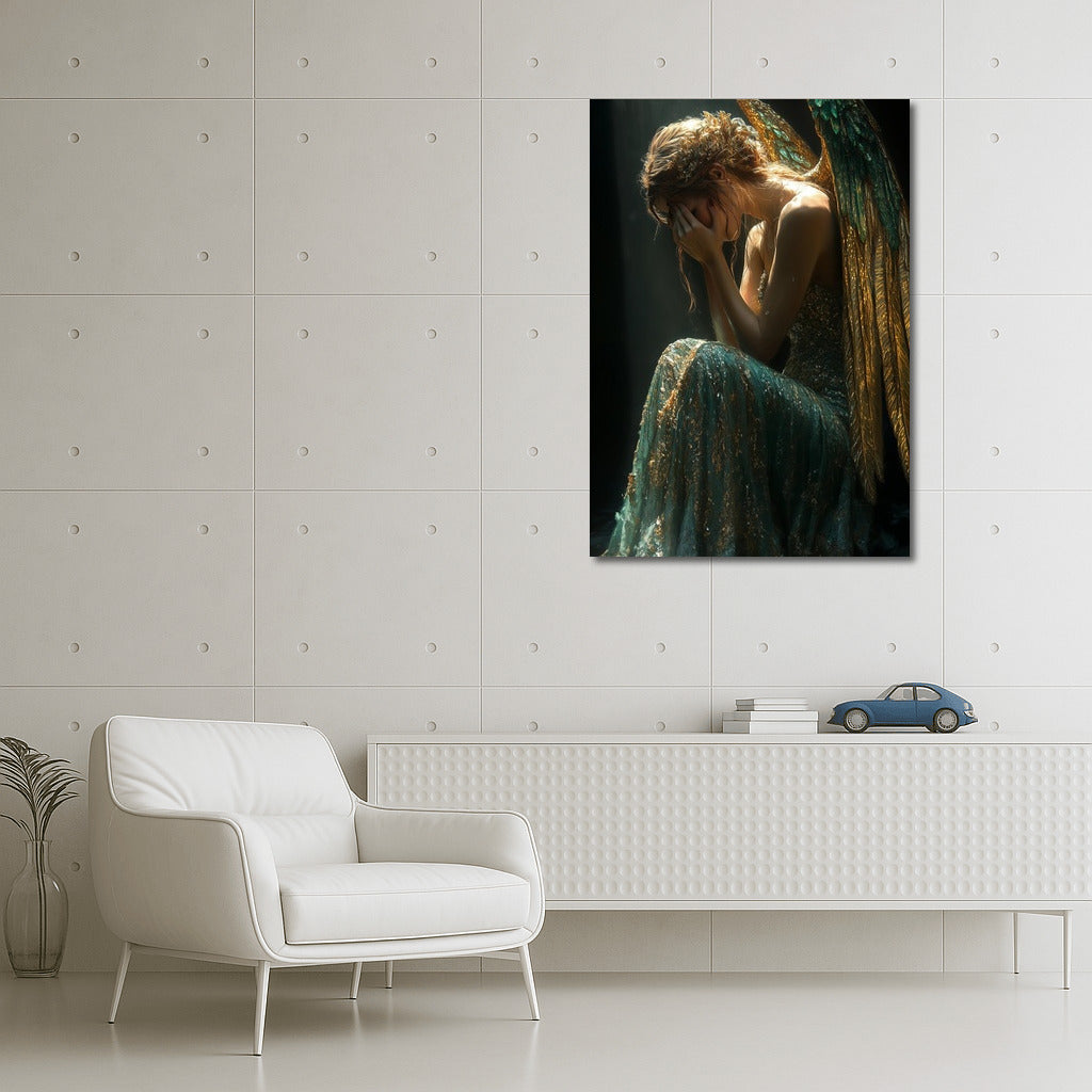 An emotional poster of a winged creature illuminated by soft light. Wall art that immerses you in a world of fantasy and mystery. See more from the collection: Mixed Wall Art