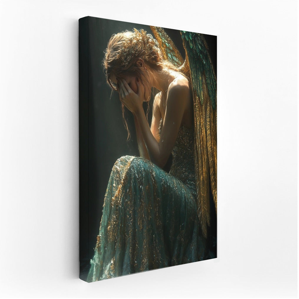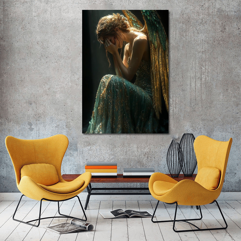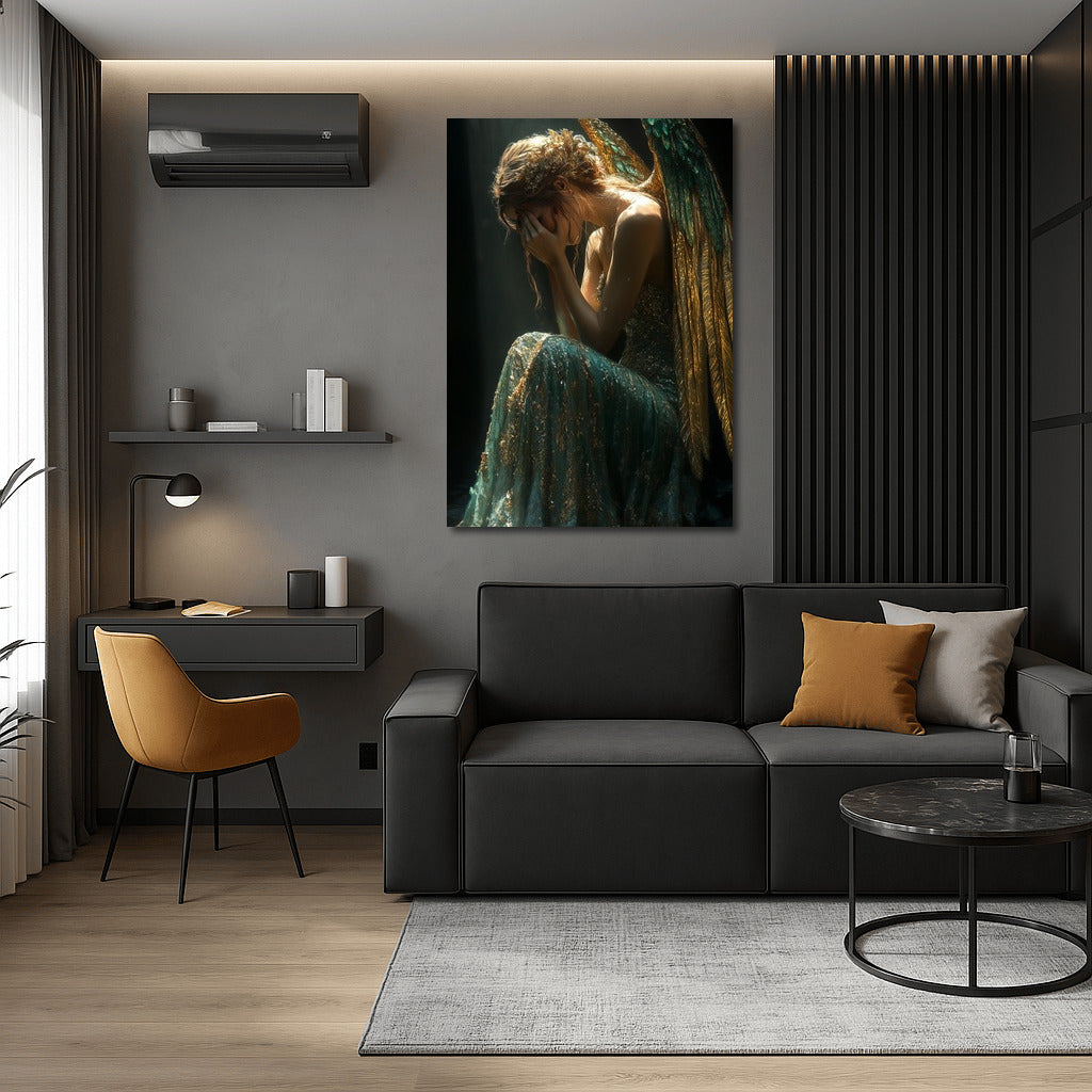 An emotional poster of a winged creature illuminated by soft light. Wall art that immerses you in a world of fantasy and mystery. See more from the collection: Mixed Wall Art