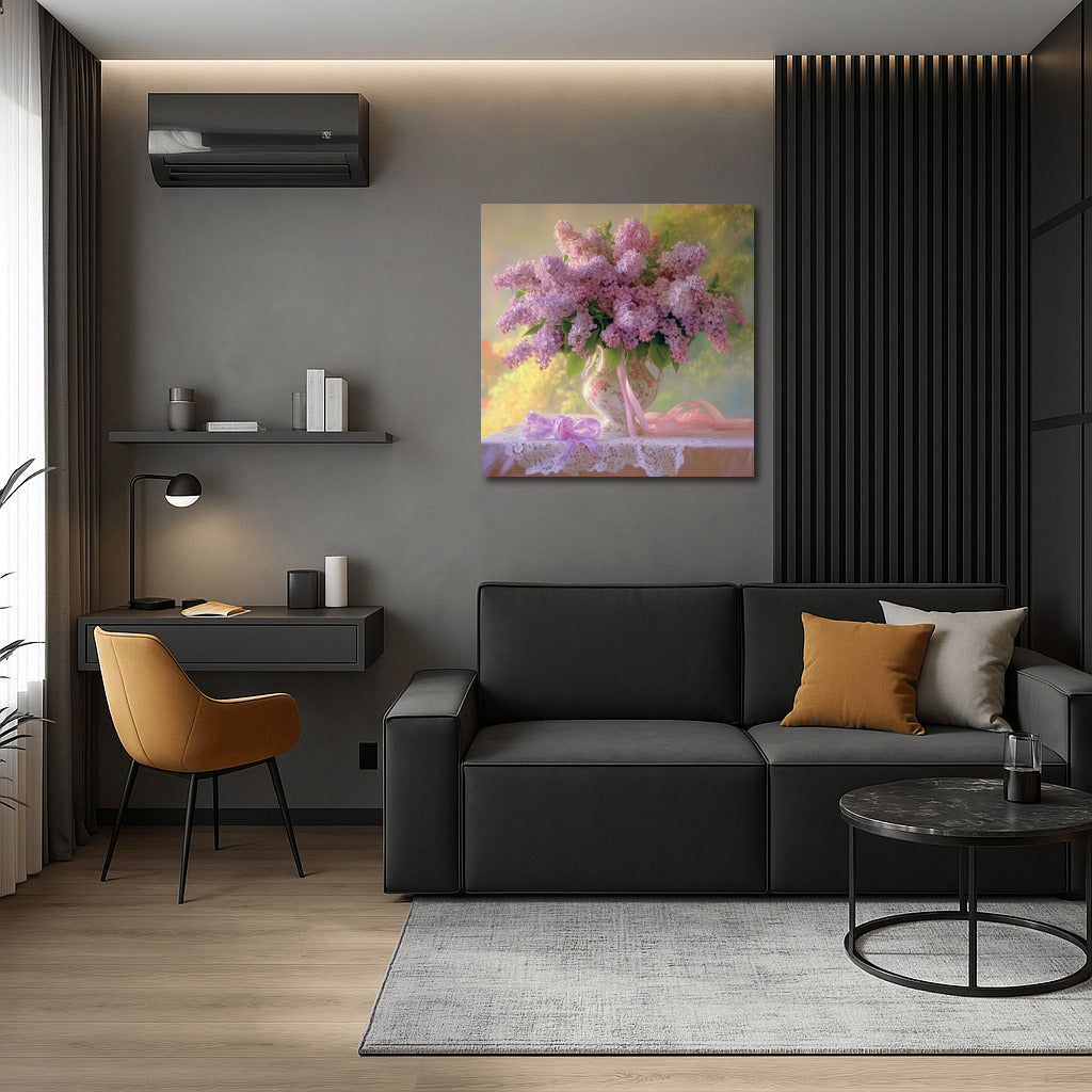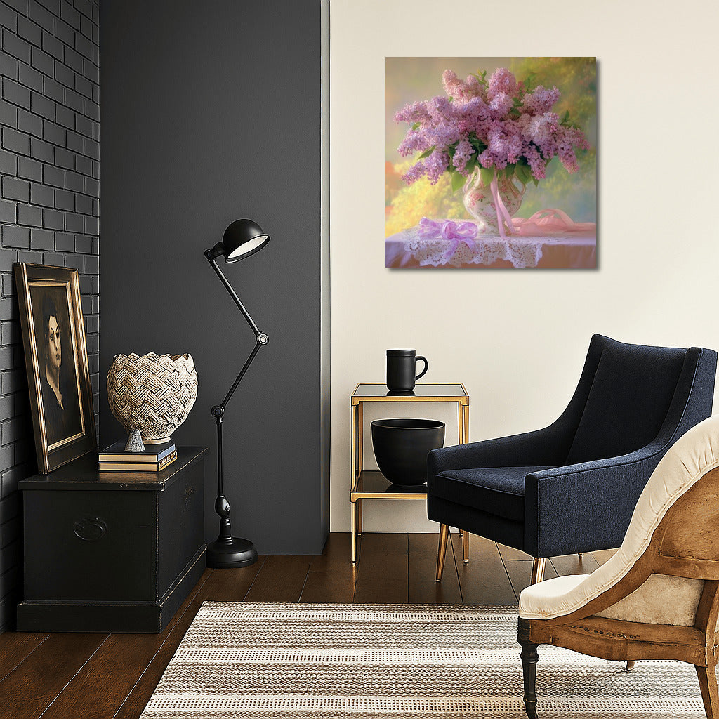 Spring Symphony of Lilac: the painting enlivens the walls with the aroma and tenderness of blooming gardens. Ideal for creating coziness. See more from the collection: Flowers Art