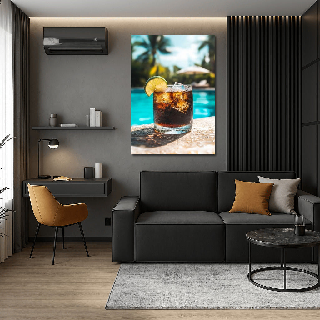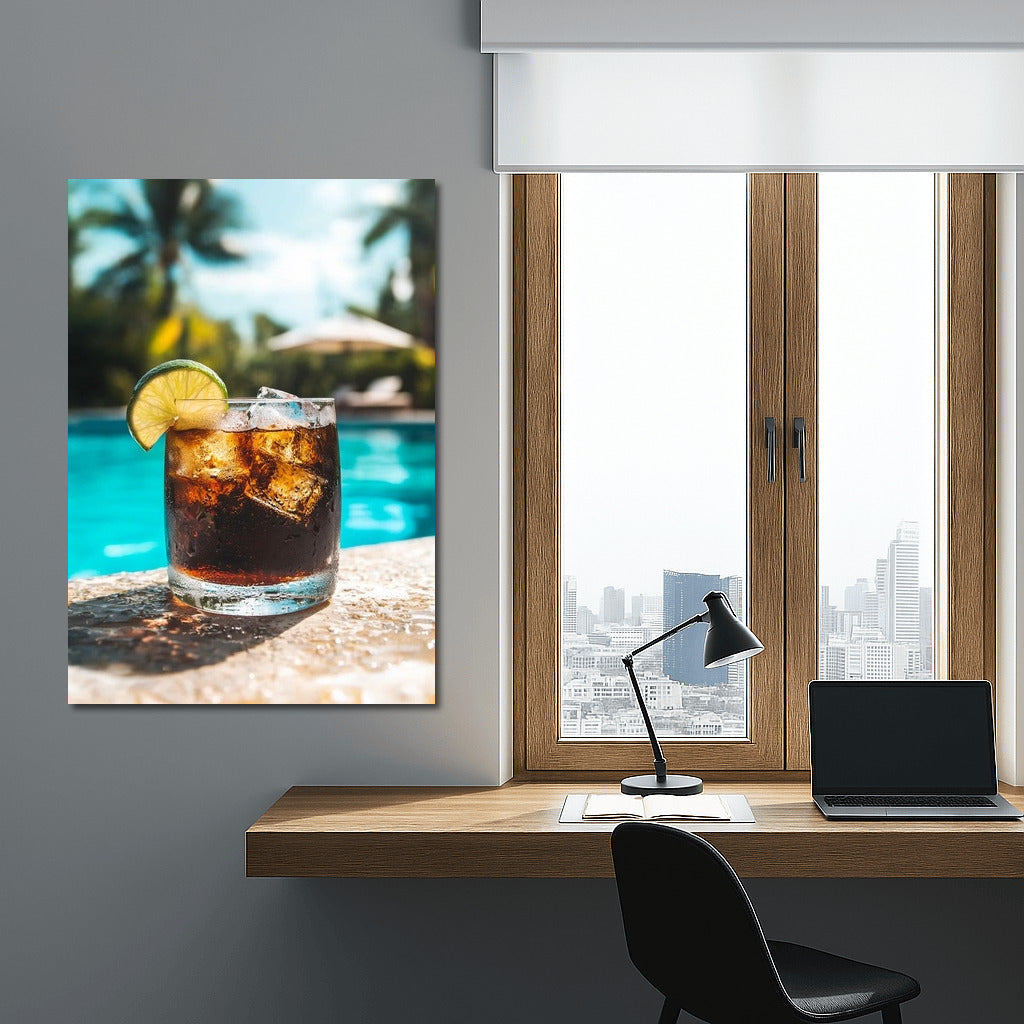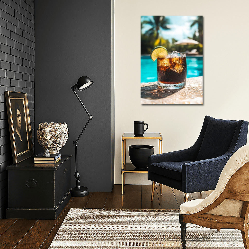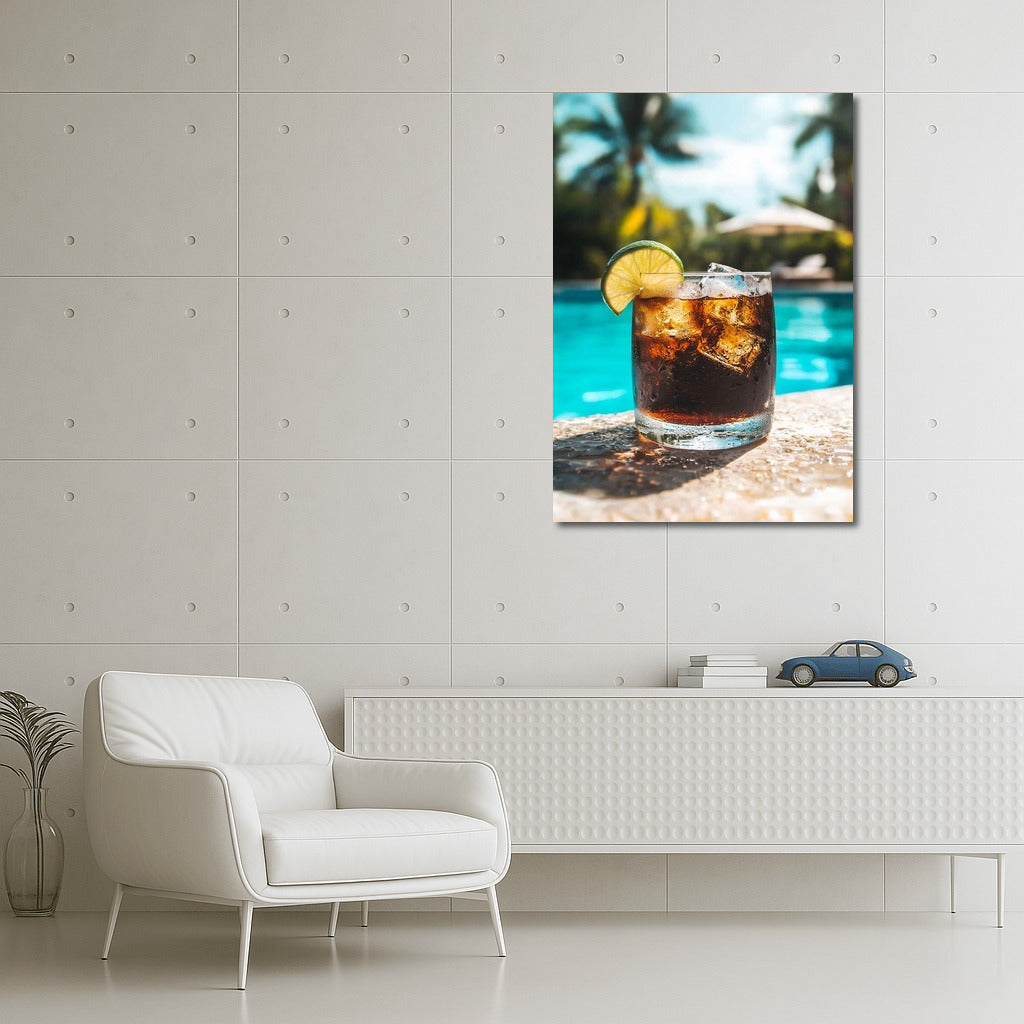 Refreshing poster: lime cocktail against a bright pool background. Perfect wall art for an eternal summer feeling! See more from the collection: Coffee & Tea Art & Drinks
