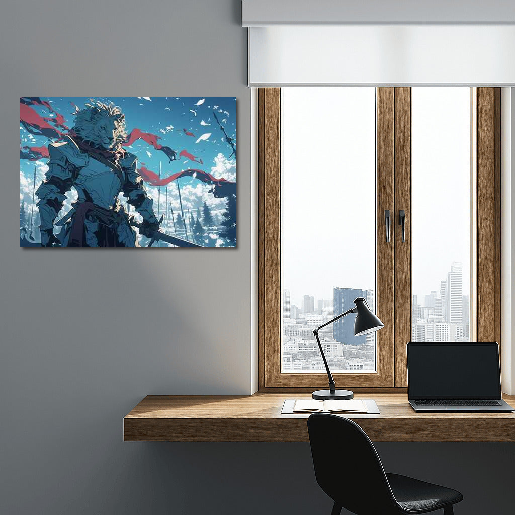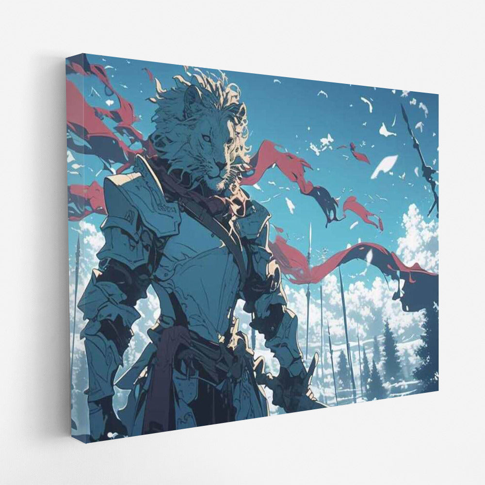 Your imagination comes to life: a poster with a majestic lion in armor, carrying the spirit of adventure and fairy-tale battles. See more from the collection: Fantasy Art