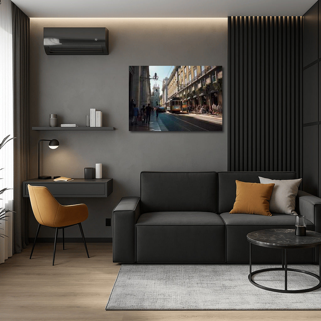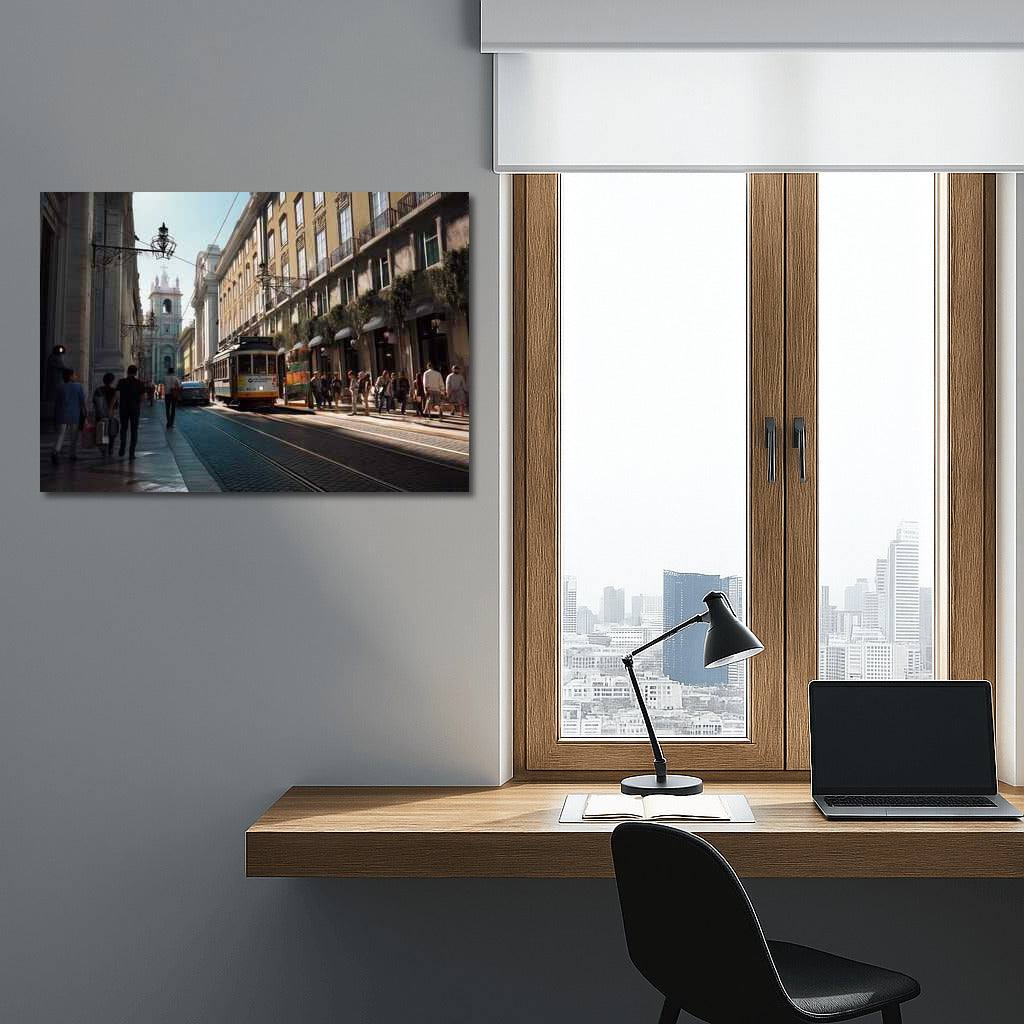 paintingsque poster Lisbon Symphony: the charm of trams and architecture, brought to life on your wall of the legendary city. See more from the collection: Cityscapes & Skylines Art