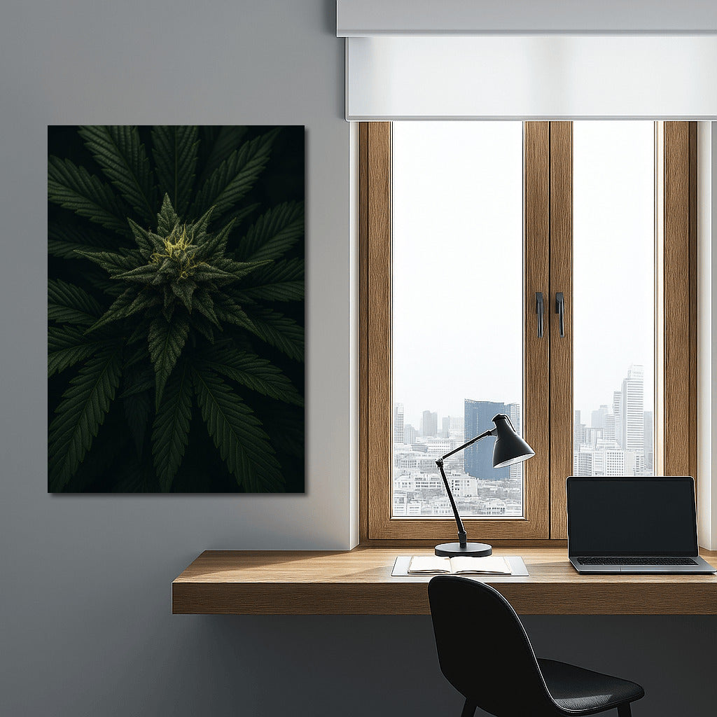Harmony of nature on the poster: every detail of the cannabis leaf and flower comes to life, creating a unique wall art. See more from the collection: Cannabis Art