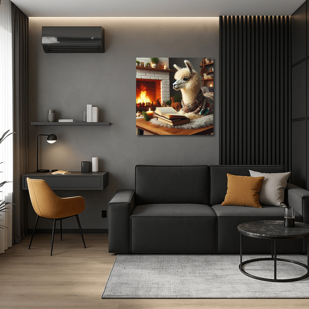 Llama by the Fireplace: Reading in Comfort Wall Art