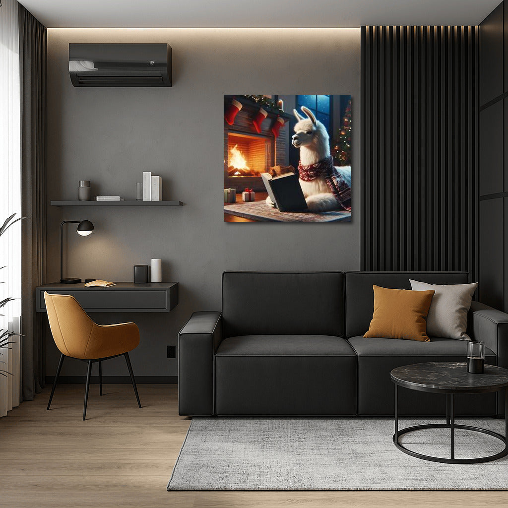Llama by the Fireplace: Reading in Warmth and Comfort Wall Art