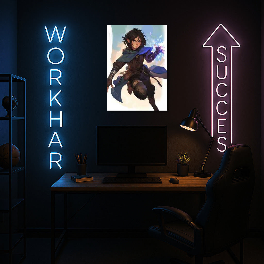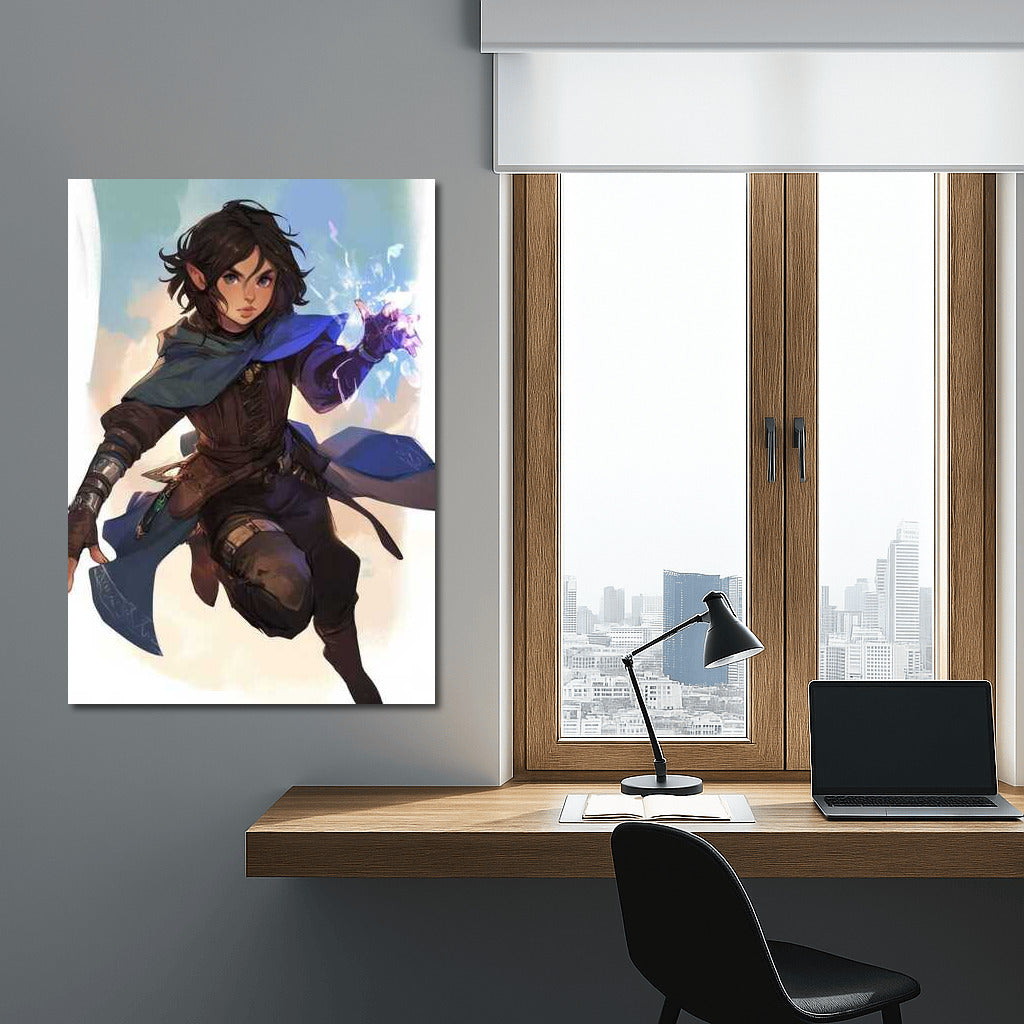 Magical adventure on the wall: a dark fantasy poster with a hero who controls mystical energy. See more from the collection: Fantasy Art