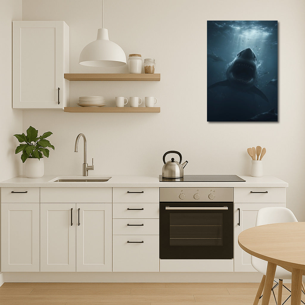 Bring the power of the ocean into your home! This majestic shark poster will add drama and depth to your wall art. See more from the collection: Animals Art