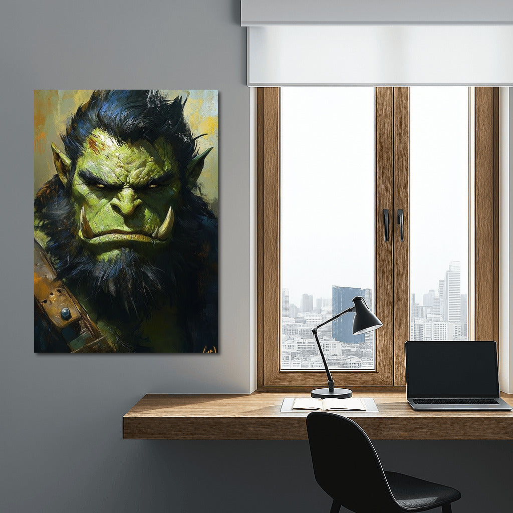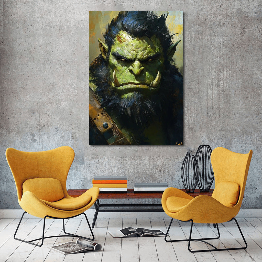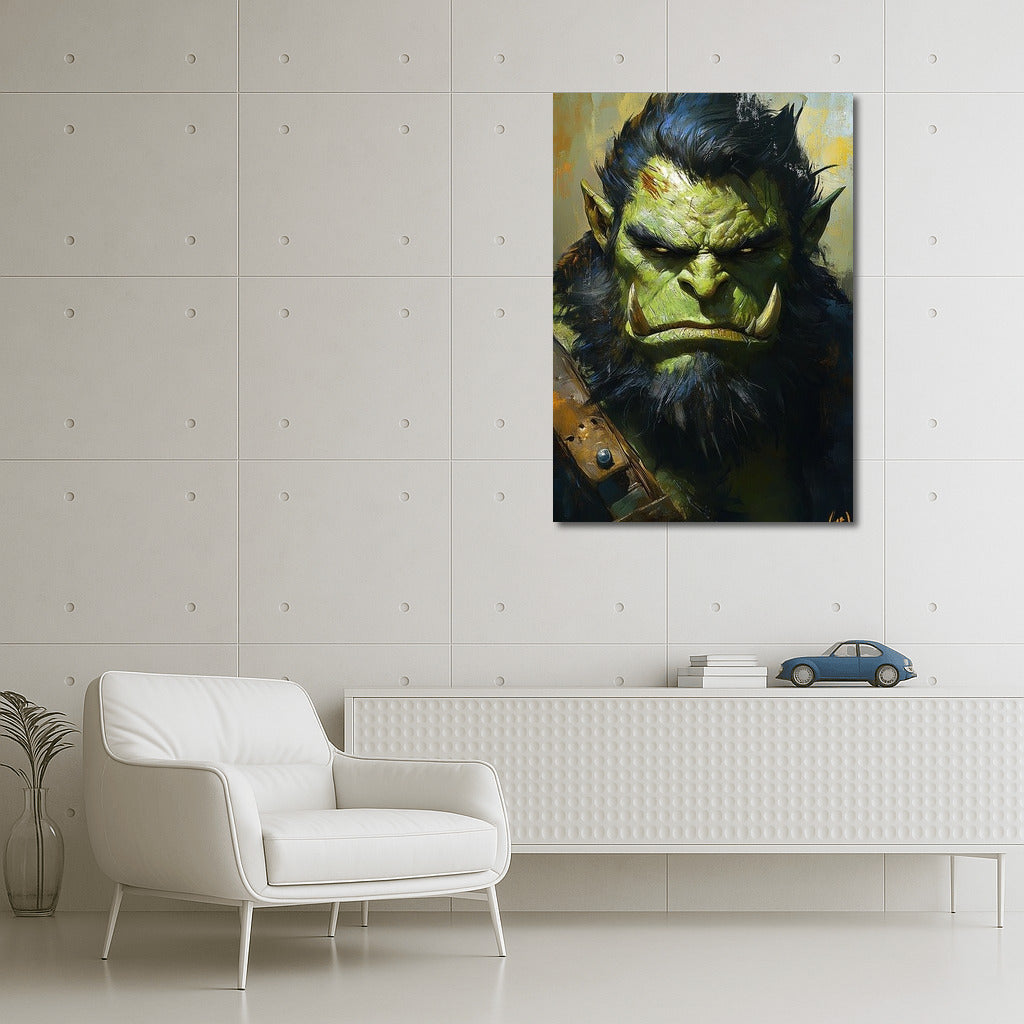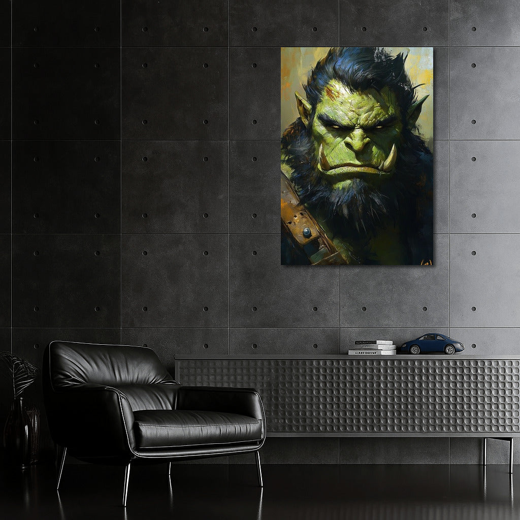 The powerful image of an orc is embodied in this captivating painting. Add an epic mood to your interior with this wall art! See more from the collection: Horror Art