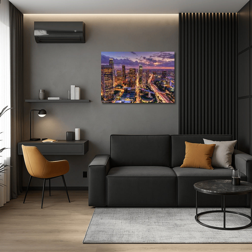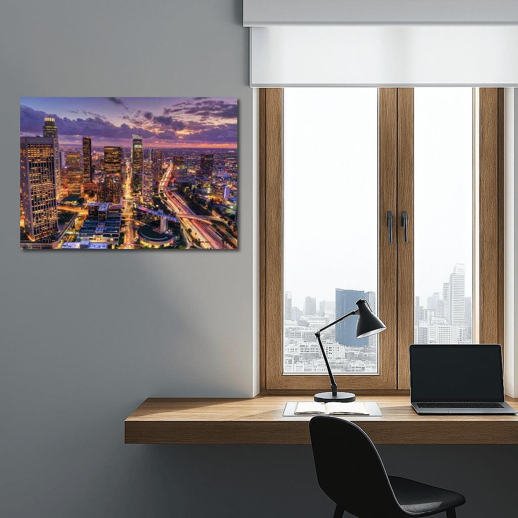 Immerse yourself in the evening light of Los Angeles with this painting. The city skyline comes to life on your wall! Wall art. See more from the collection: Cityscapes & Skylines Art