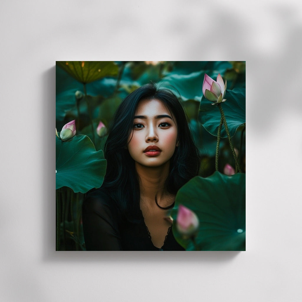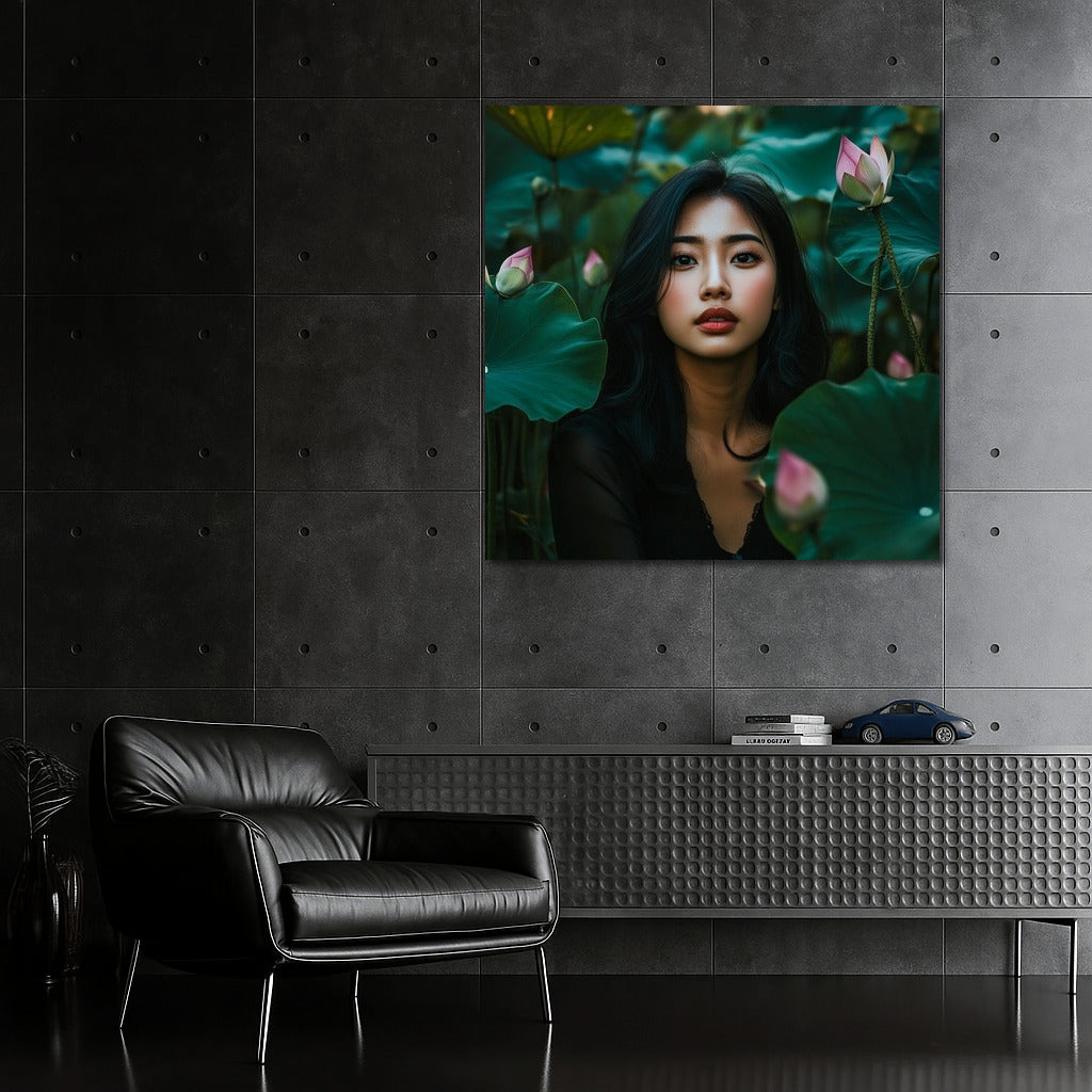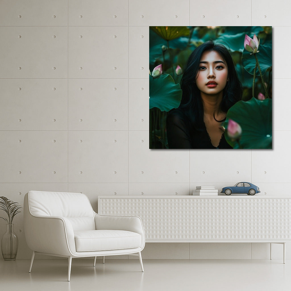 Magical Poster: A mysterious figure among lotuses comes to life in this painting, bringing harmony to your wall art. See more from the collection: Wall Art with Women