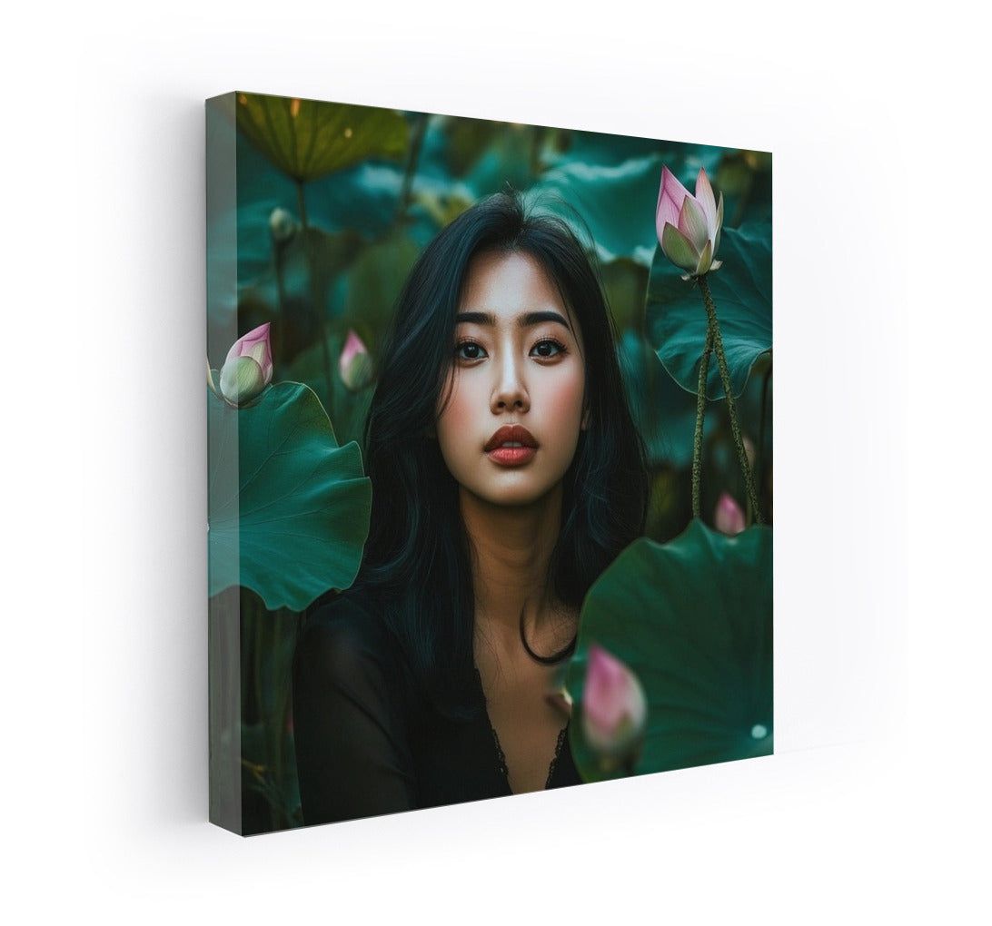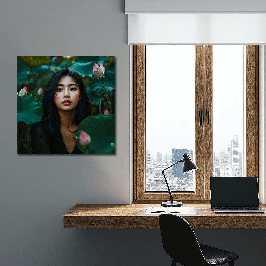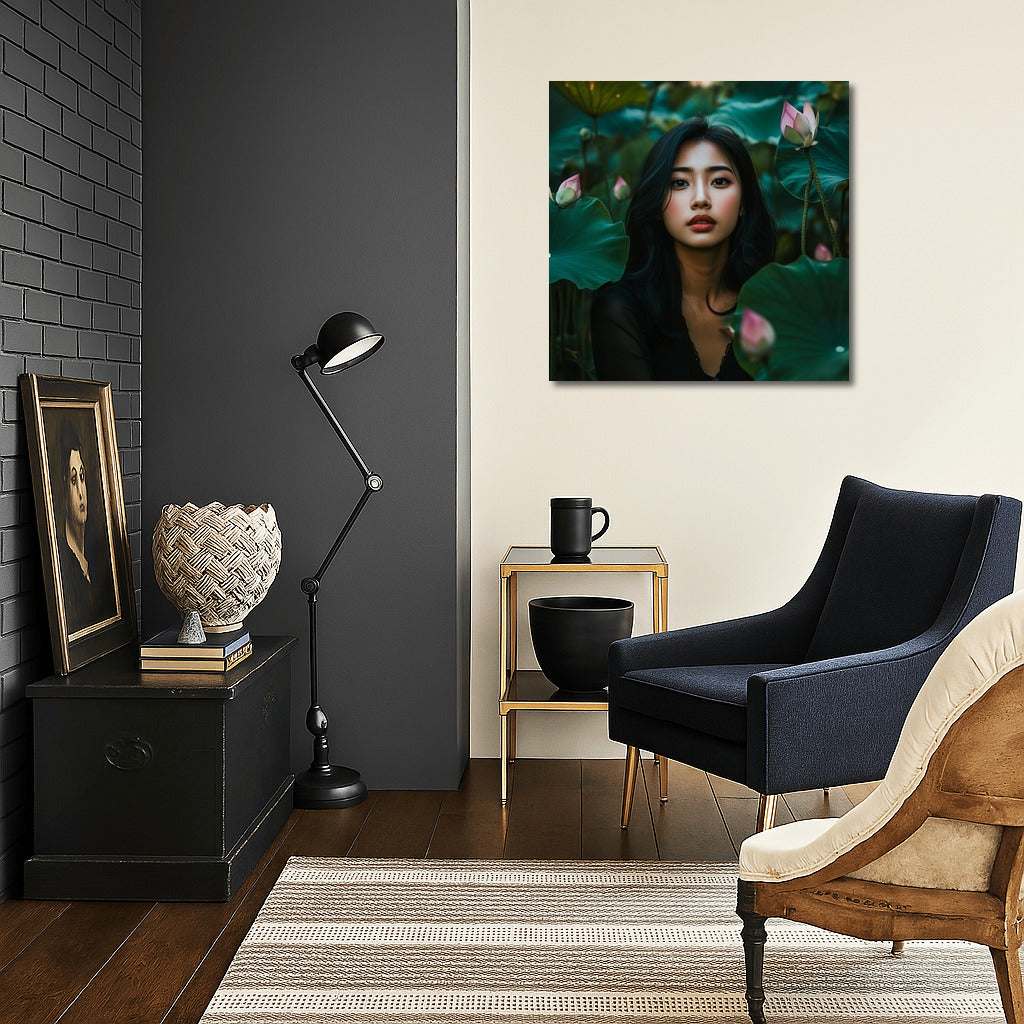 Magical Poster: A mysterious figure among lotuses comes to life in this painting, bringing harmony to your wall art. See more from the collection: Wall Art with Women