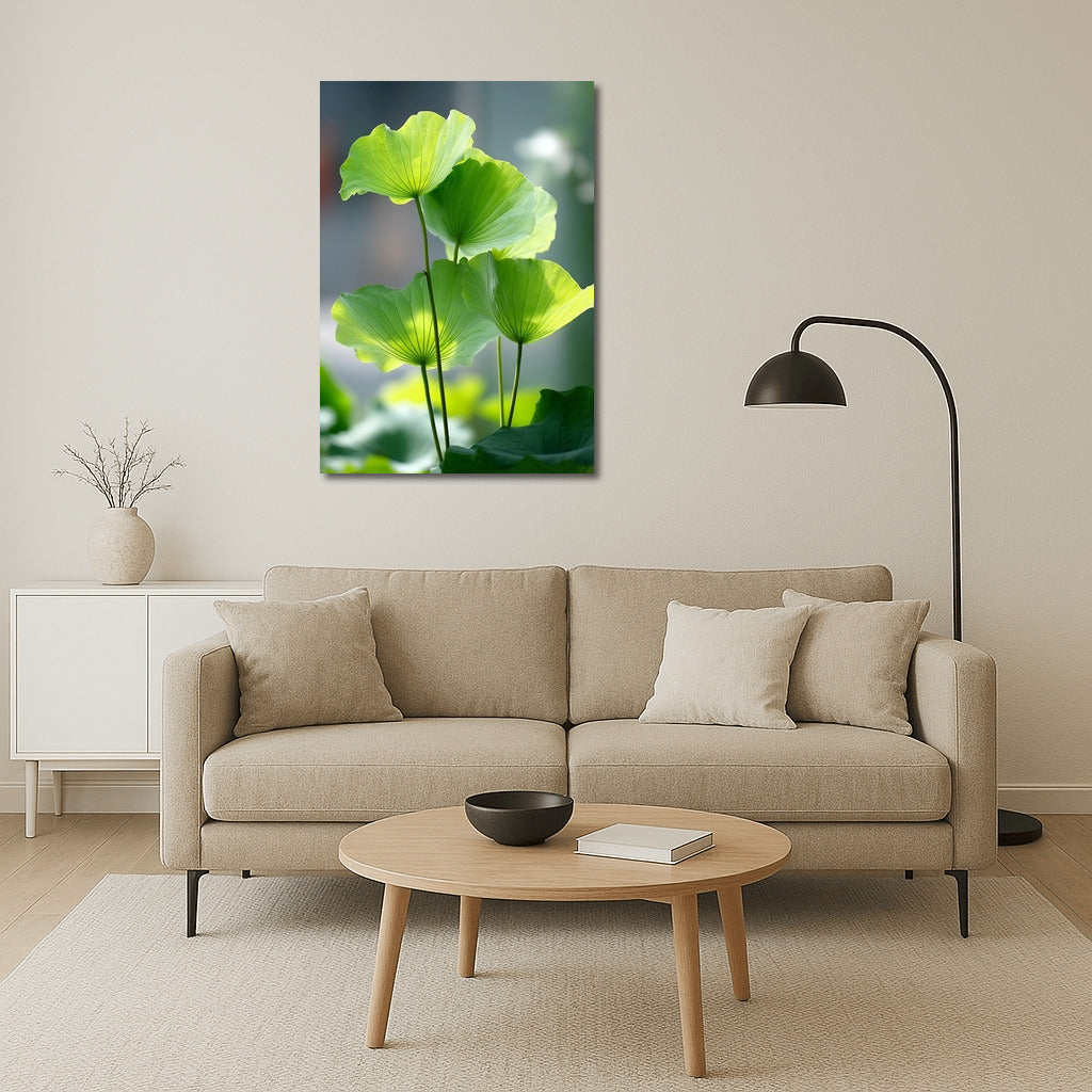 Elegant painting with lotus leaves: this poster will enliven your interior, giving it freshness and lightness. Wall art. See more from the collection: Flowers Art