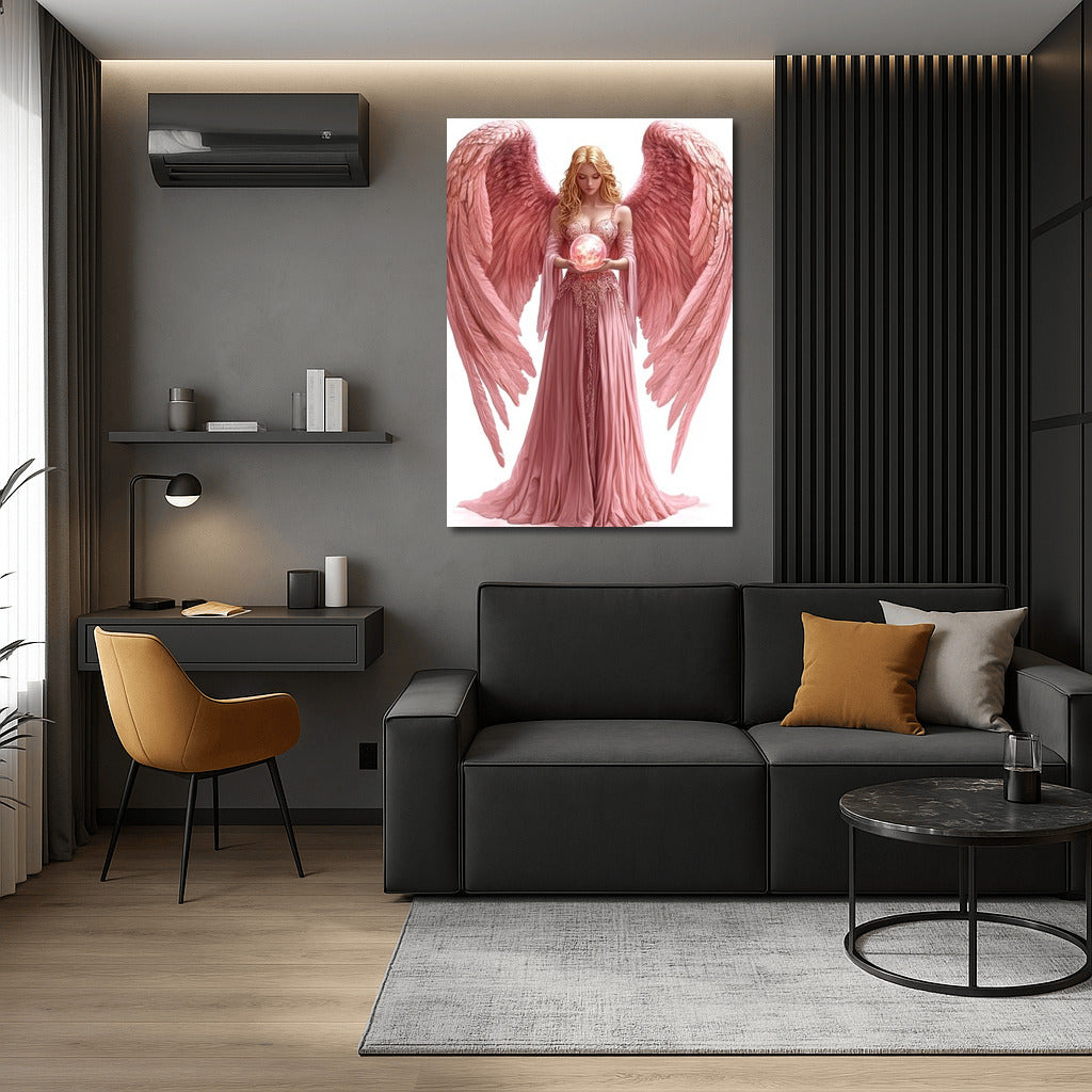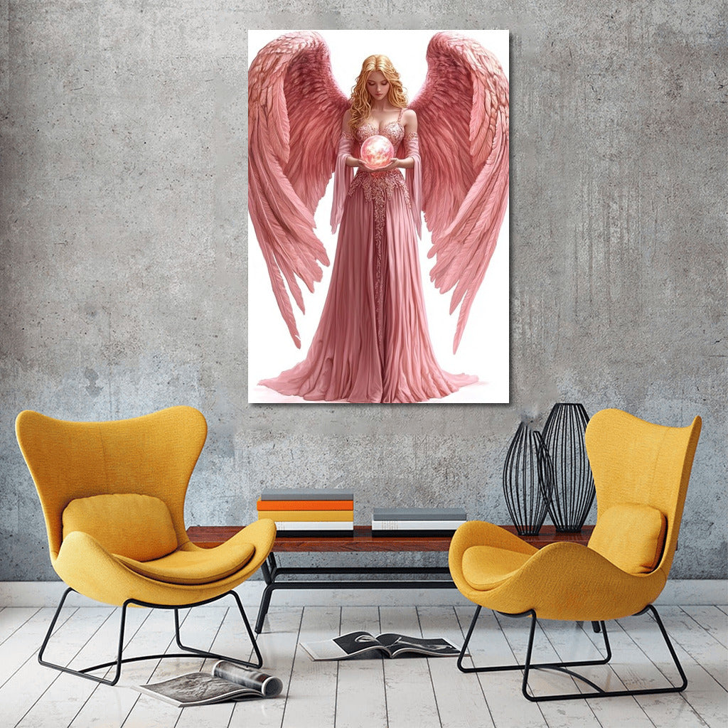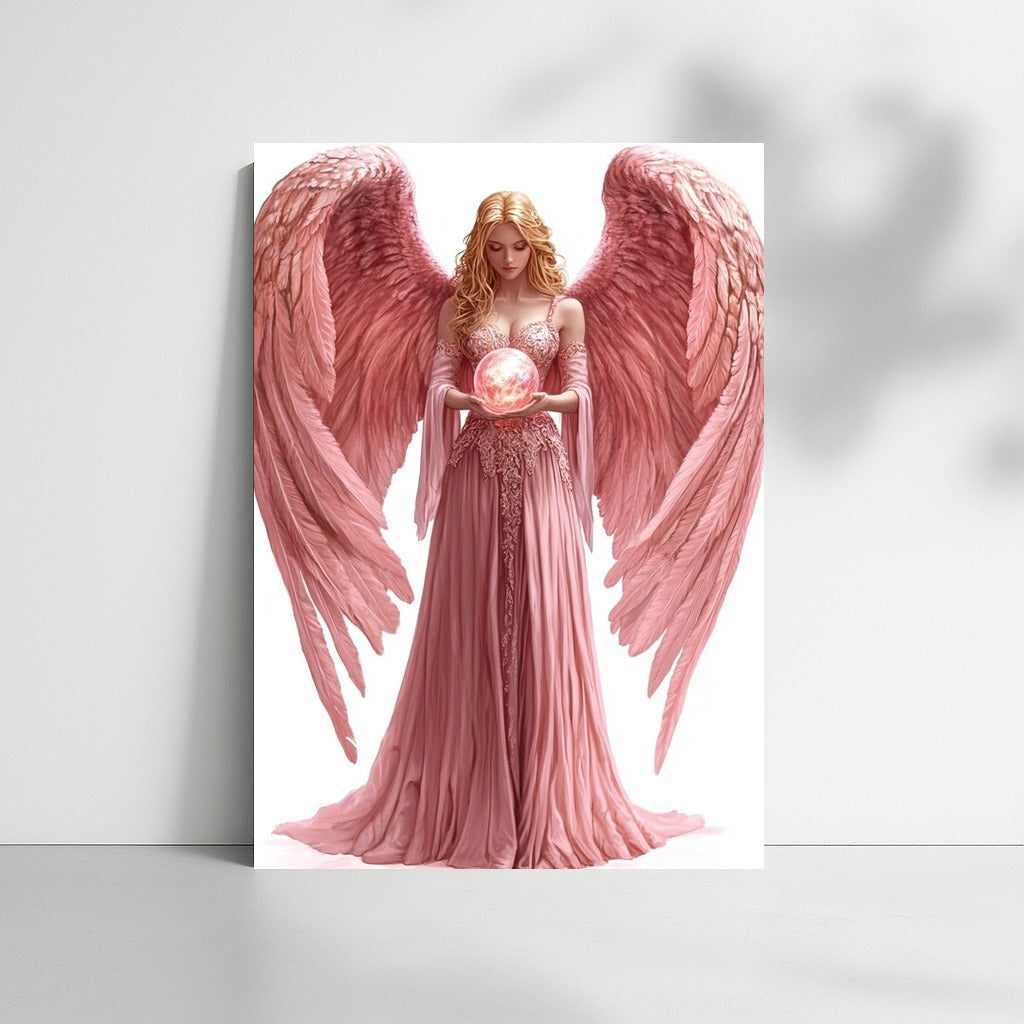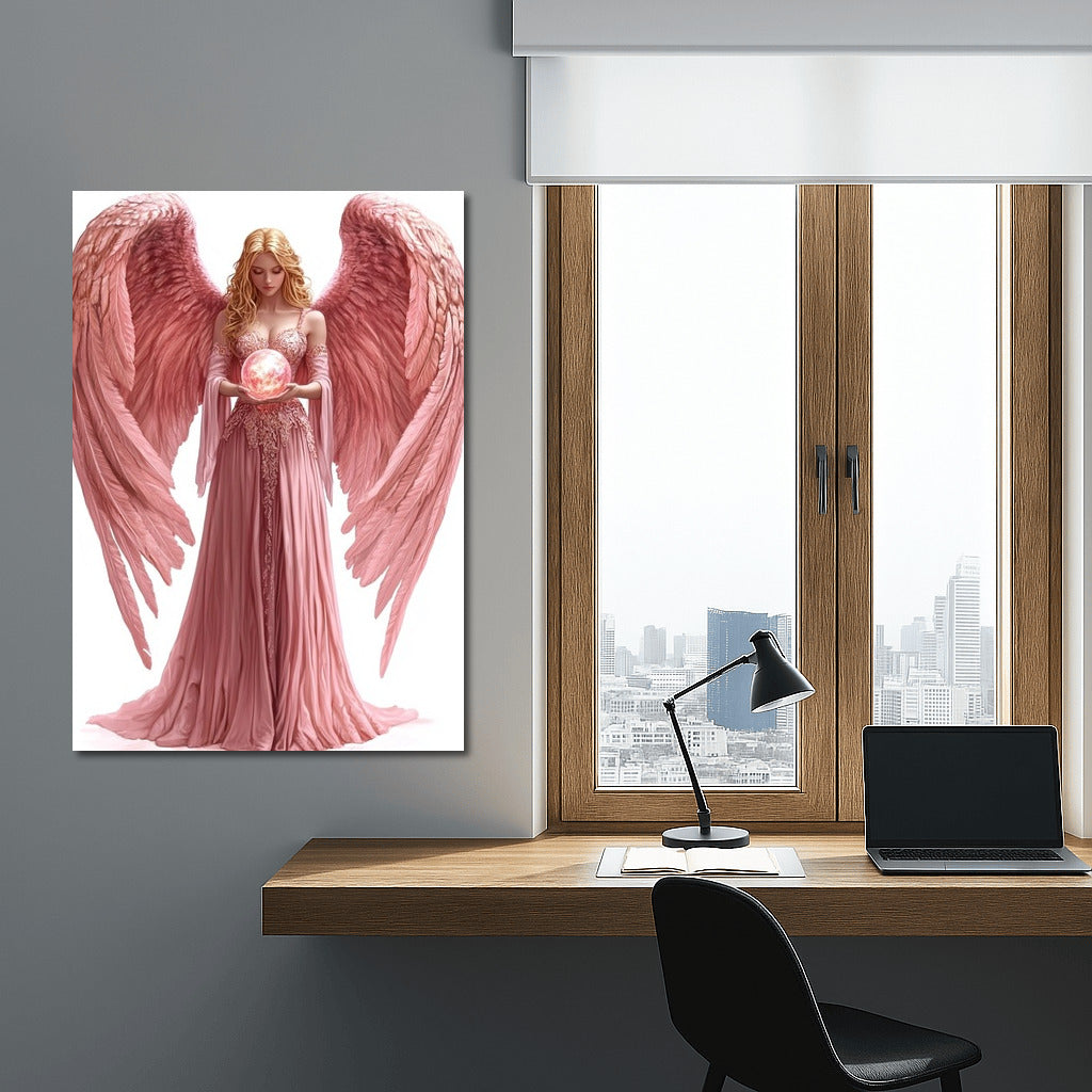Angelic Grace: Ethereal wall art featuring a beautiful creature holding a glowing orb. Magic in every stroke. See more from the collection: Mixed Wall Art