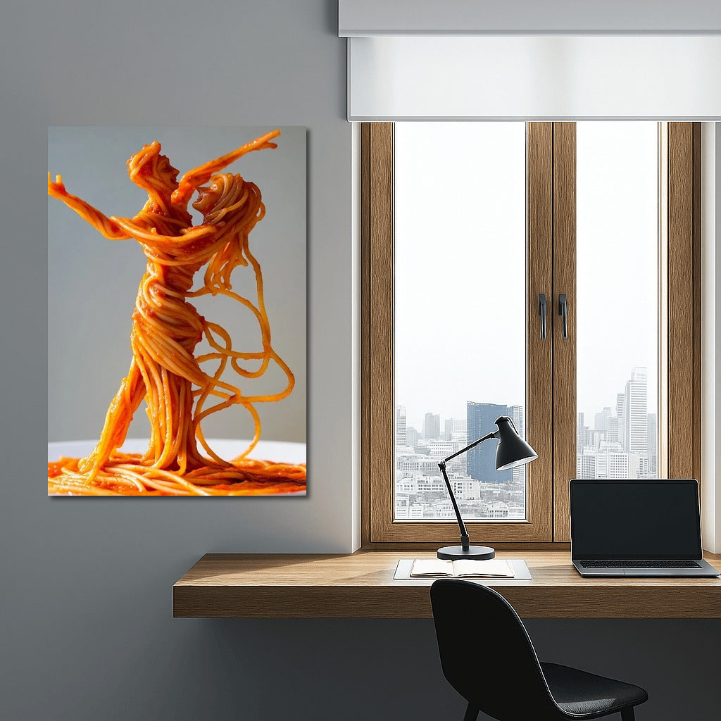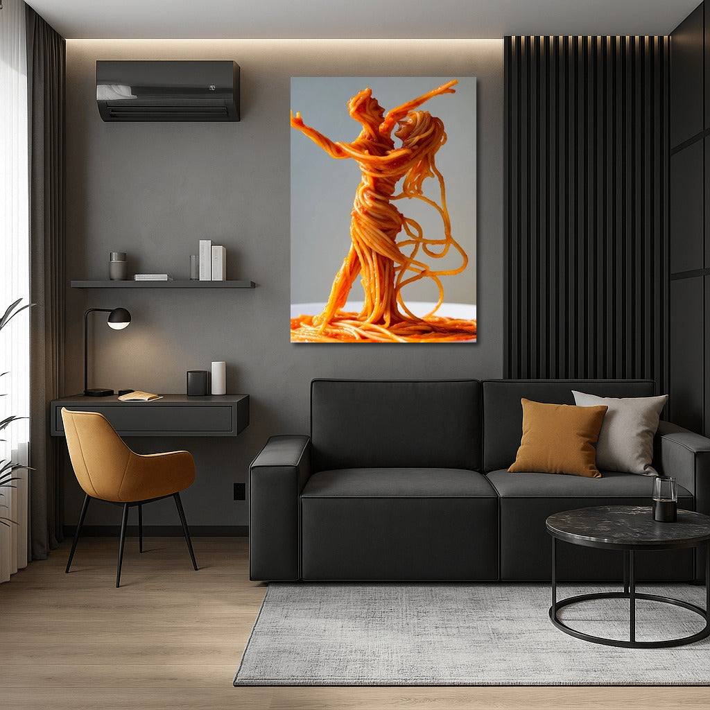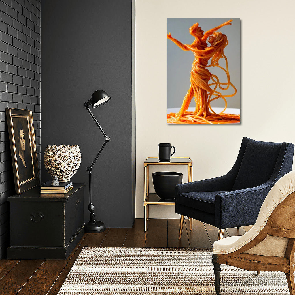 A whirlwind of emotions from spaghetti on a plate. This poster will add a playful accent to your wall art, surprising everyone who looks at it! See more from the collection: Food Art