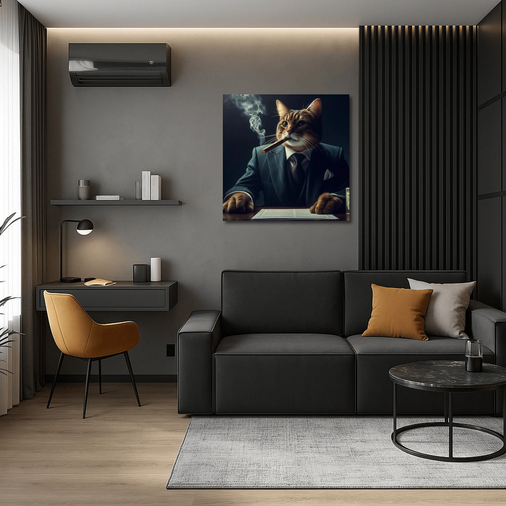 A stylish cat in a suit and with a cigar will add a touch of mafia chic to your interior. Wall art for connoisseurs of sophistication. See more from the collection: Animals Art