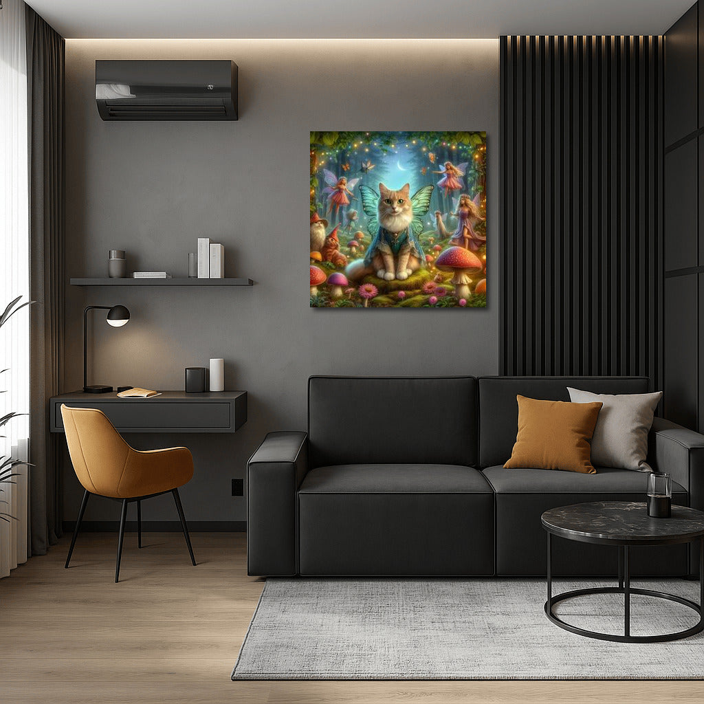 Magic Cat in the Fairytale Forest: Fantastic Creatures and Mushrooms Wall Art
