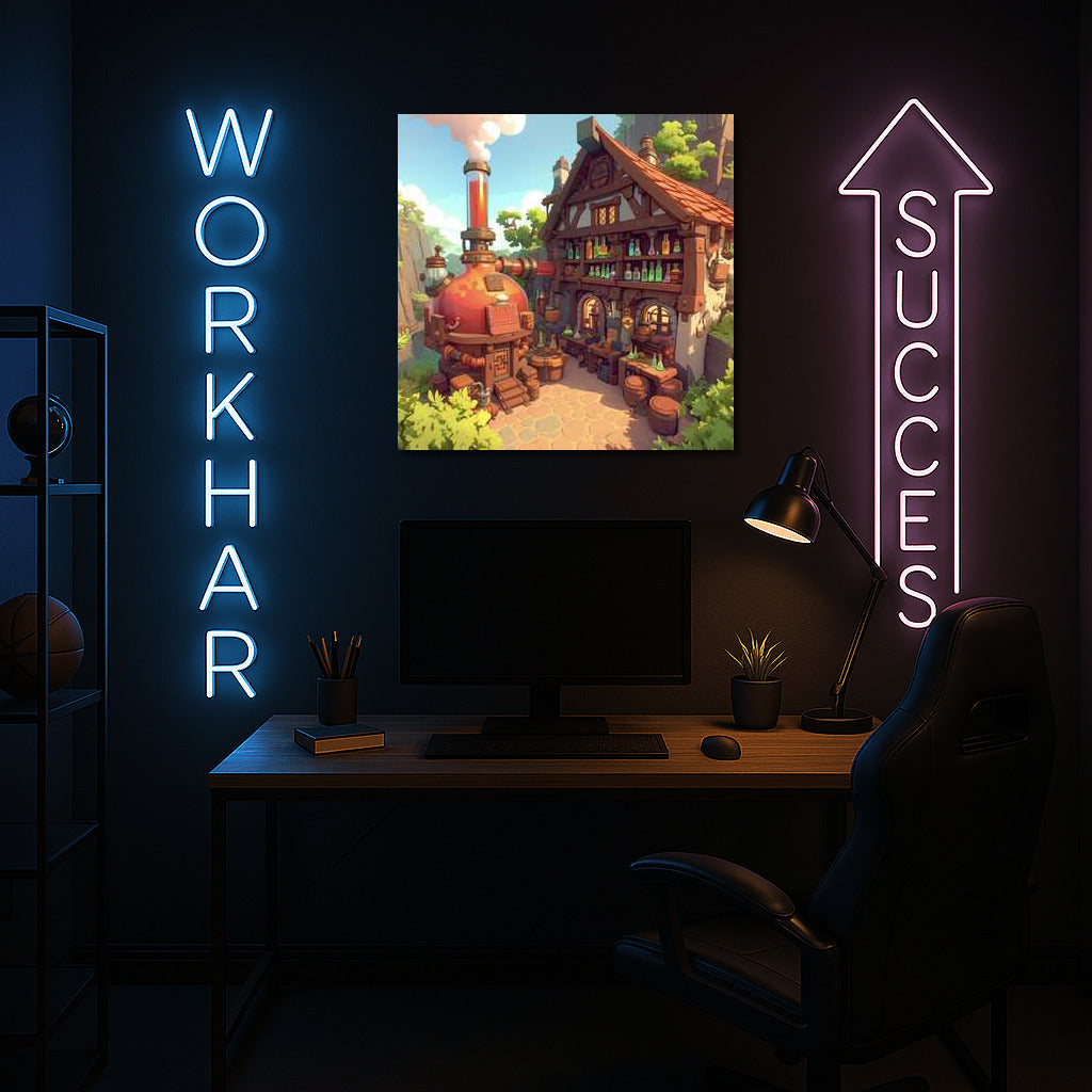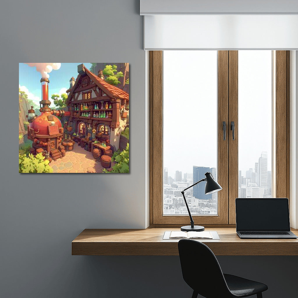 Open the door to the world of fairy tales with this painting: the magical house of the alchemist comes to life on your wall, adding a Fantasy atmosphere. See more from the collection: Fantasy Art