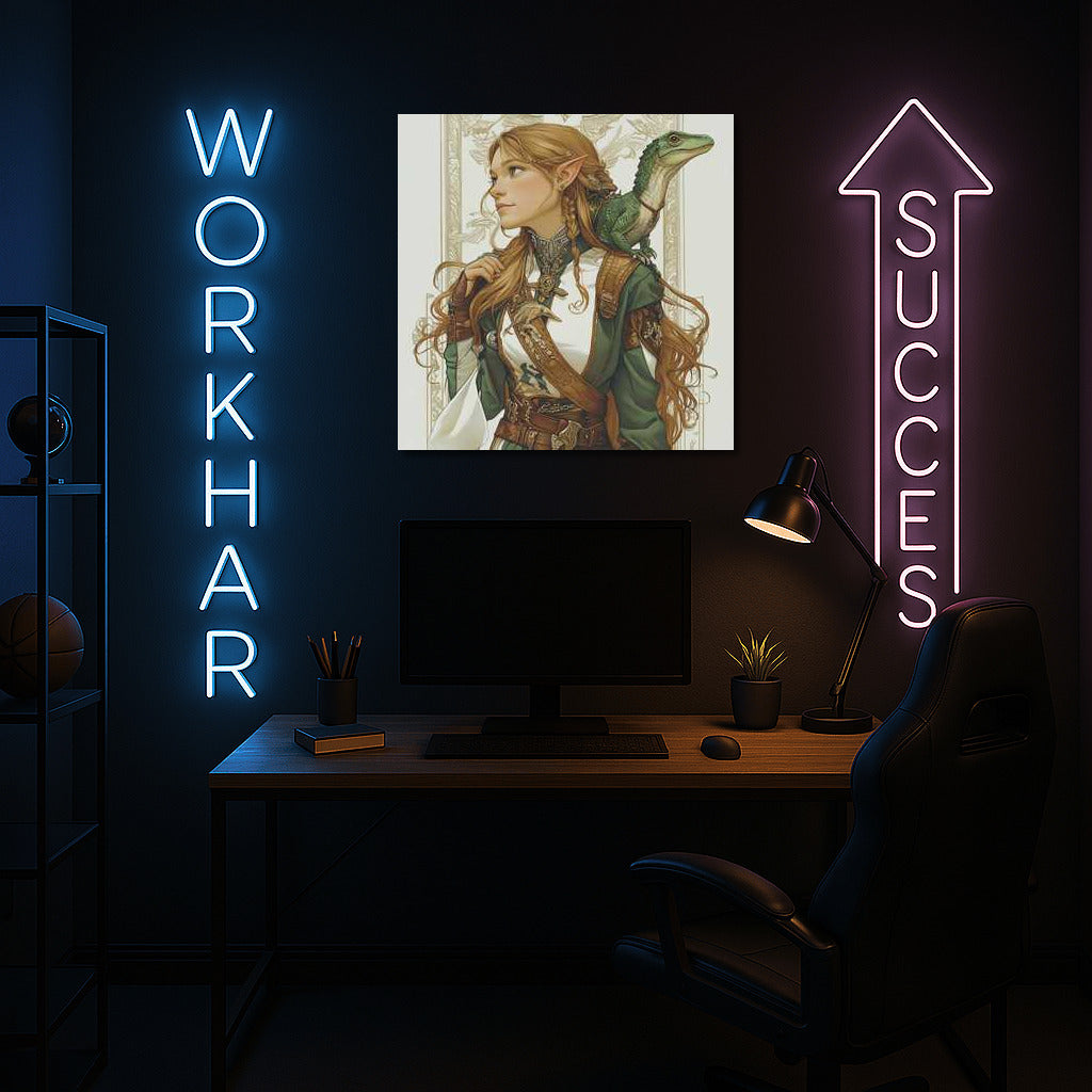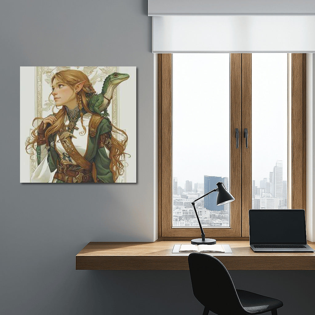 Dive into the world of Fantasy with this incredible painting: a magical character and his dragon become a decoration for your interior. See more from the collection: Fantasy Art